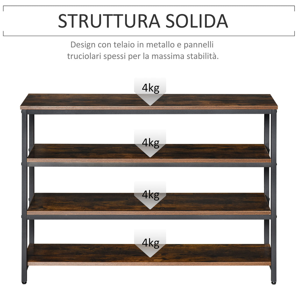 Etagère 4 étagères 100x30x72 cm en métal et bois marron rustique