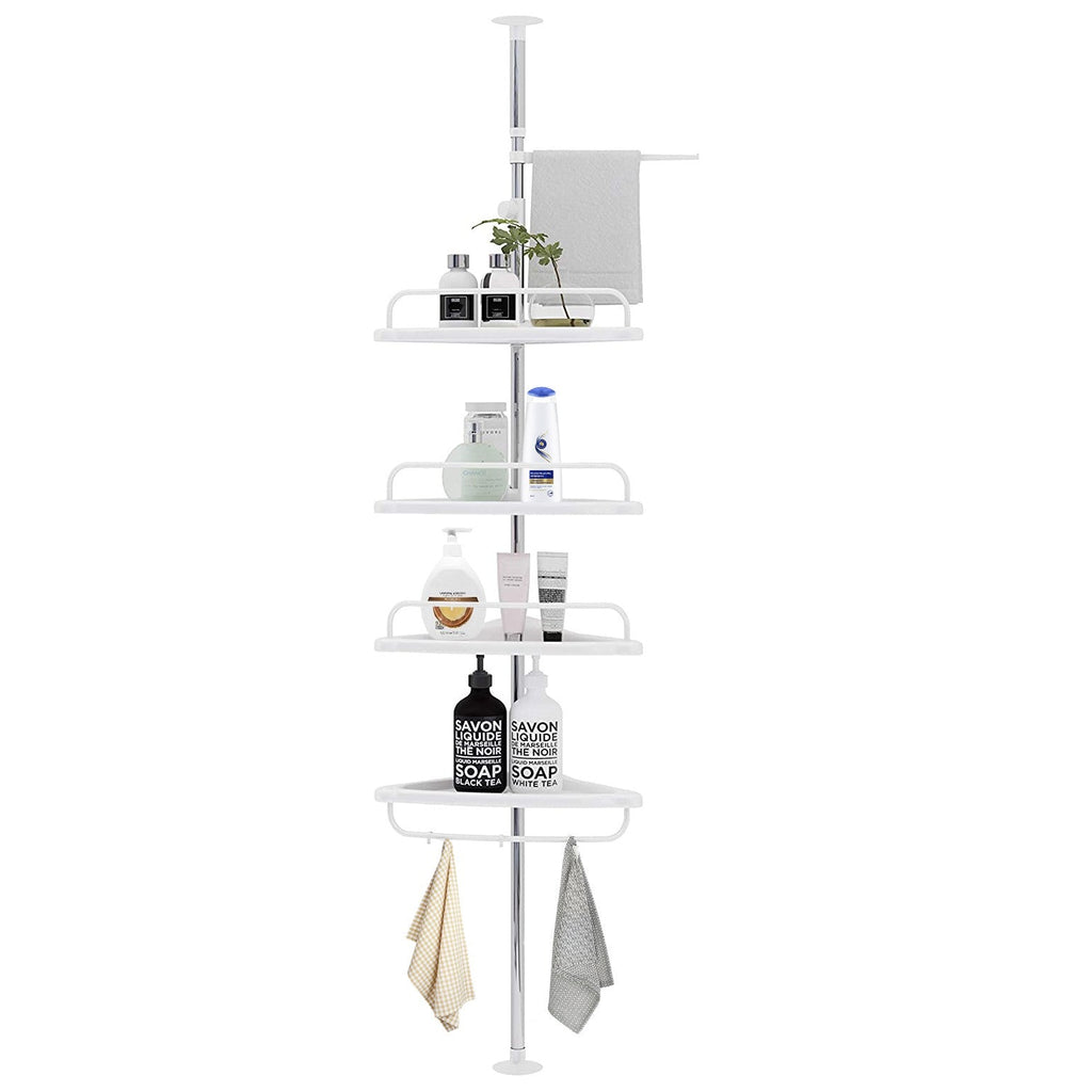 Étagère d'angle télescopique H95-260 cm pour salle de bain 4 étagères de rangement en métal et plastique blanc