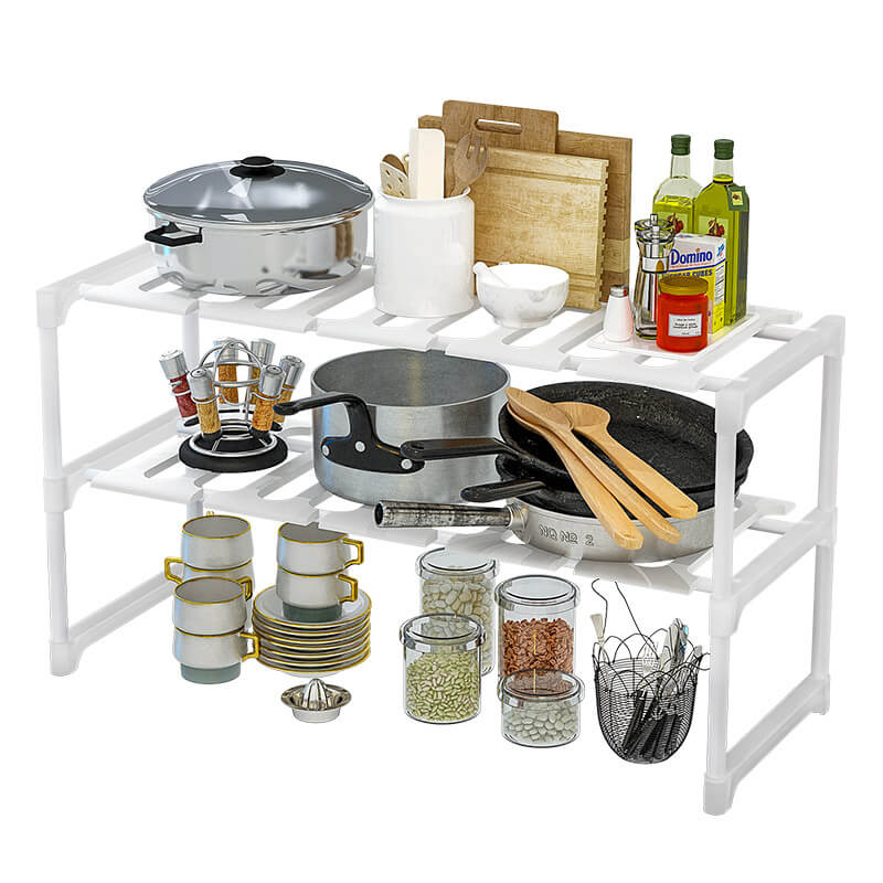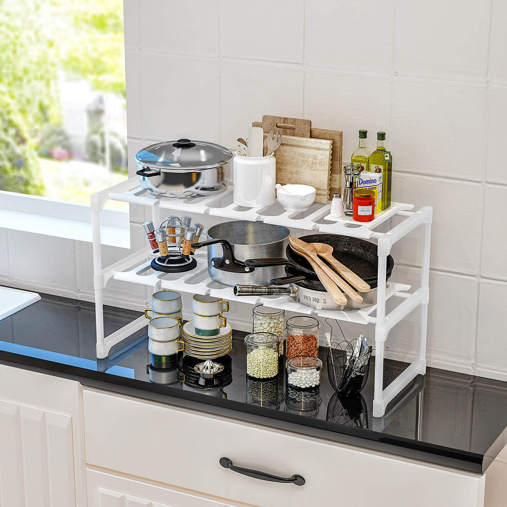 Étagère Extensible 2 Étagères 52/86x30,5x44 cm en Métal et Plastique Slot Blanc