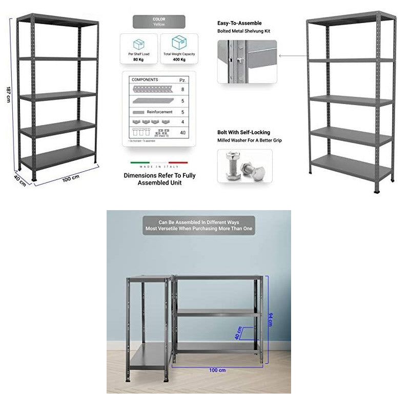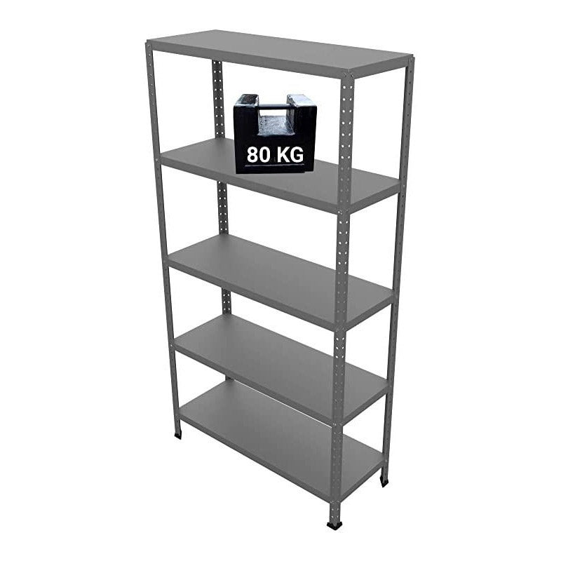 Etagère en métal avec 5 étagères, chaque étagère supporte 80kg.