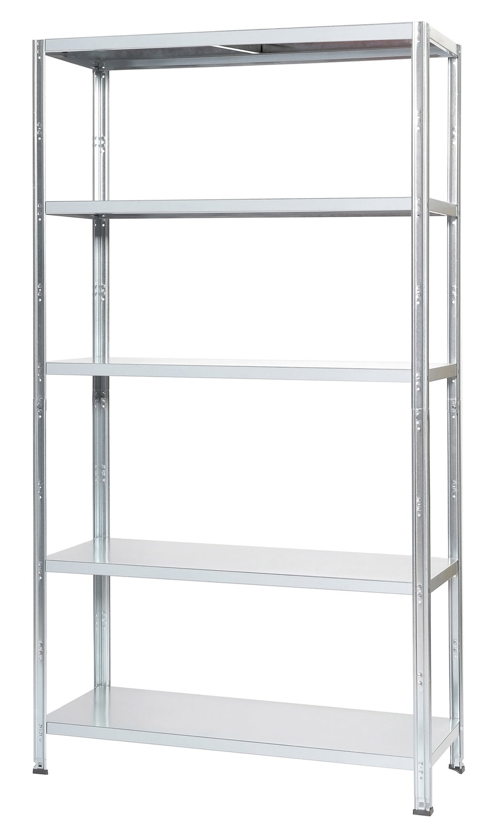 Kit d'étagères métalliques à emboîtement pour un assemblage facile avec 5 étages. Chaque étagère a une capacité de charge allant jusqu'à 80 kg avec une répartition uniforme. Le système de verrouillage pratique offre une facilité et une rapidité de montage maximales. Robuste et durable Idéal pour la maison, le bureau, le garage ou l'entrepôt.