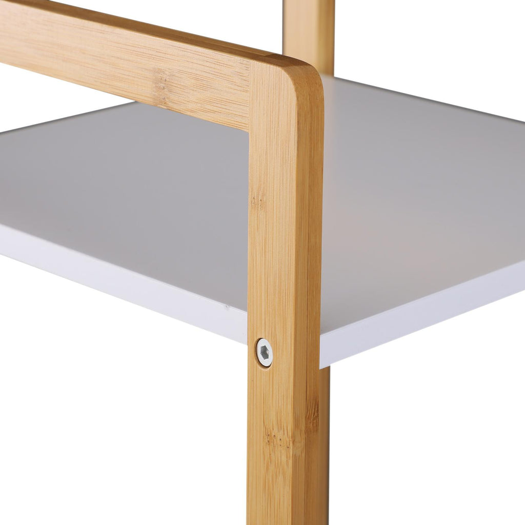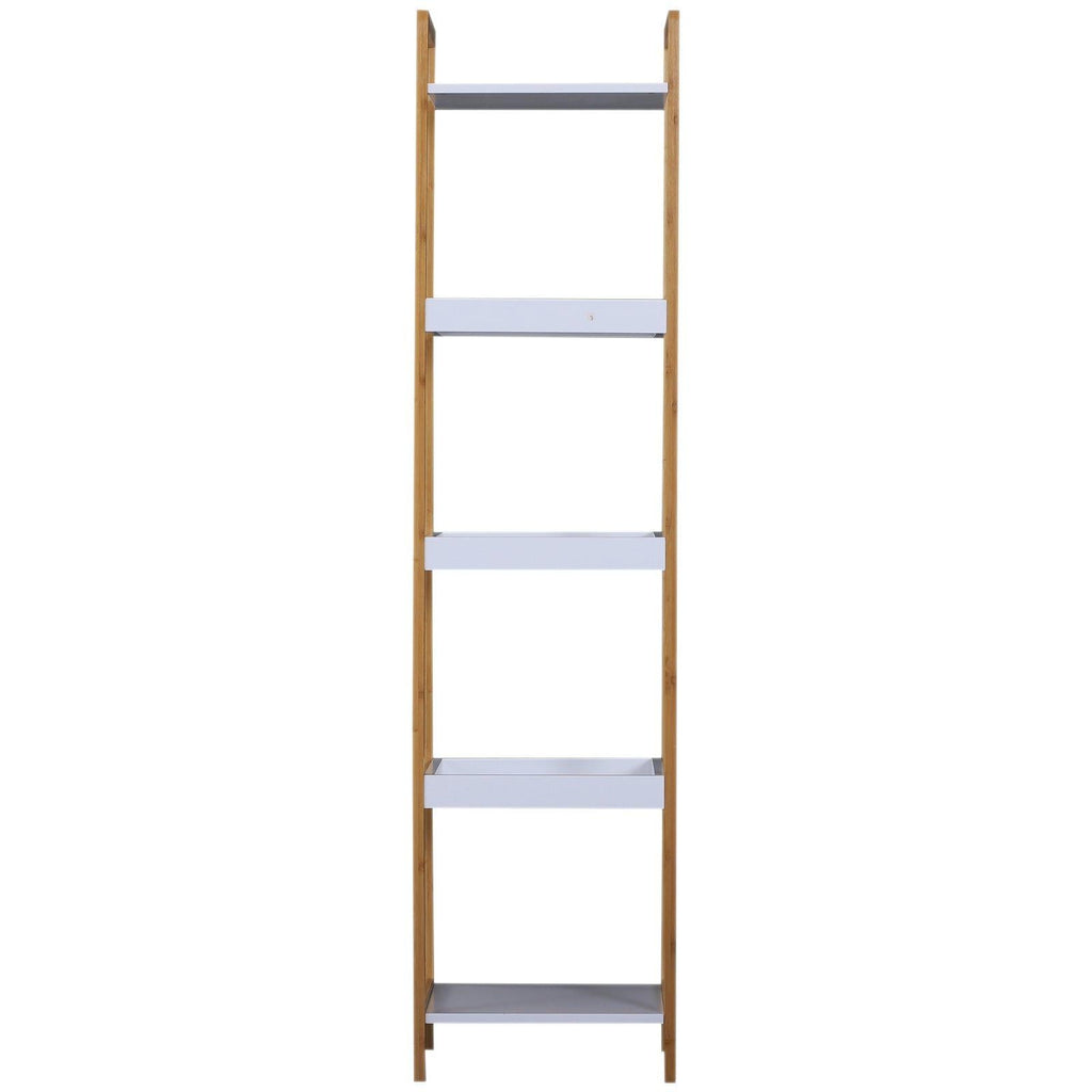 Étagère de Rangement 5 Niveaux en Bambou et MDF Blanc et Bois Naturel 32x30x130 cm