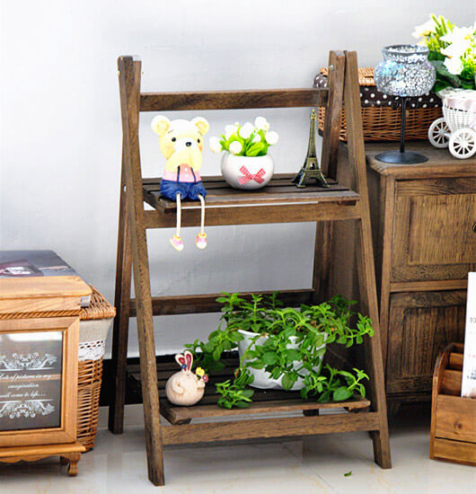 Etagère à Plantes 42x32x69 cm 2 Etagères Pliables en Bois de Noyer Fumer Kelvin