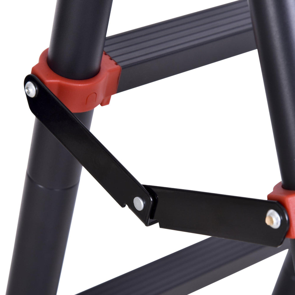 Échelle Télescopique Extensible 4+4 Marches avec Plateau à Objets Noir et Rouge
