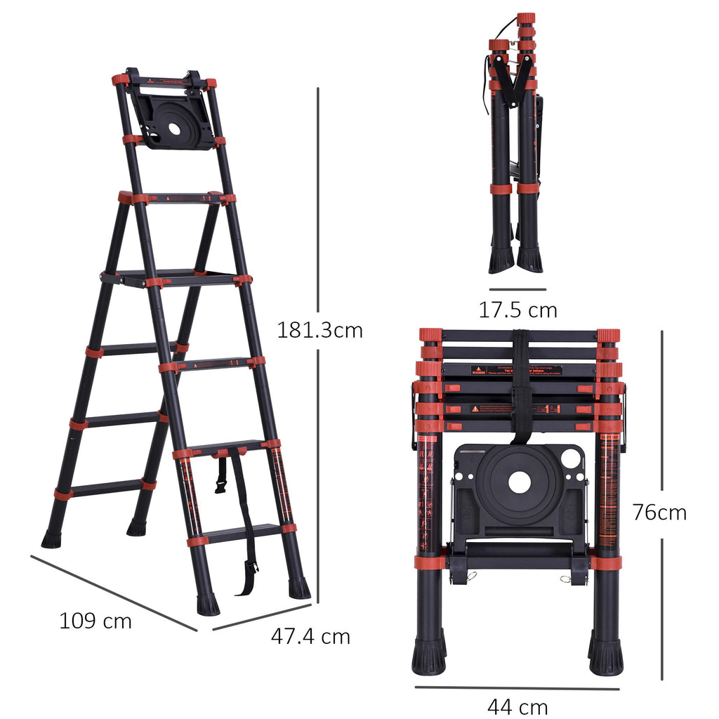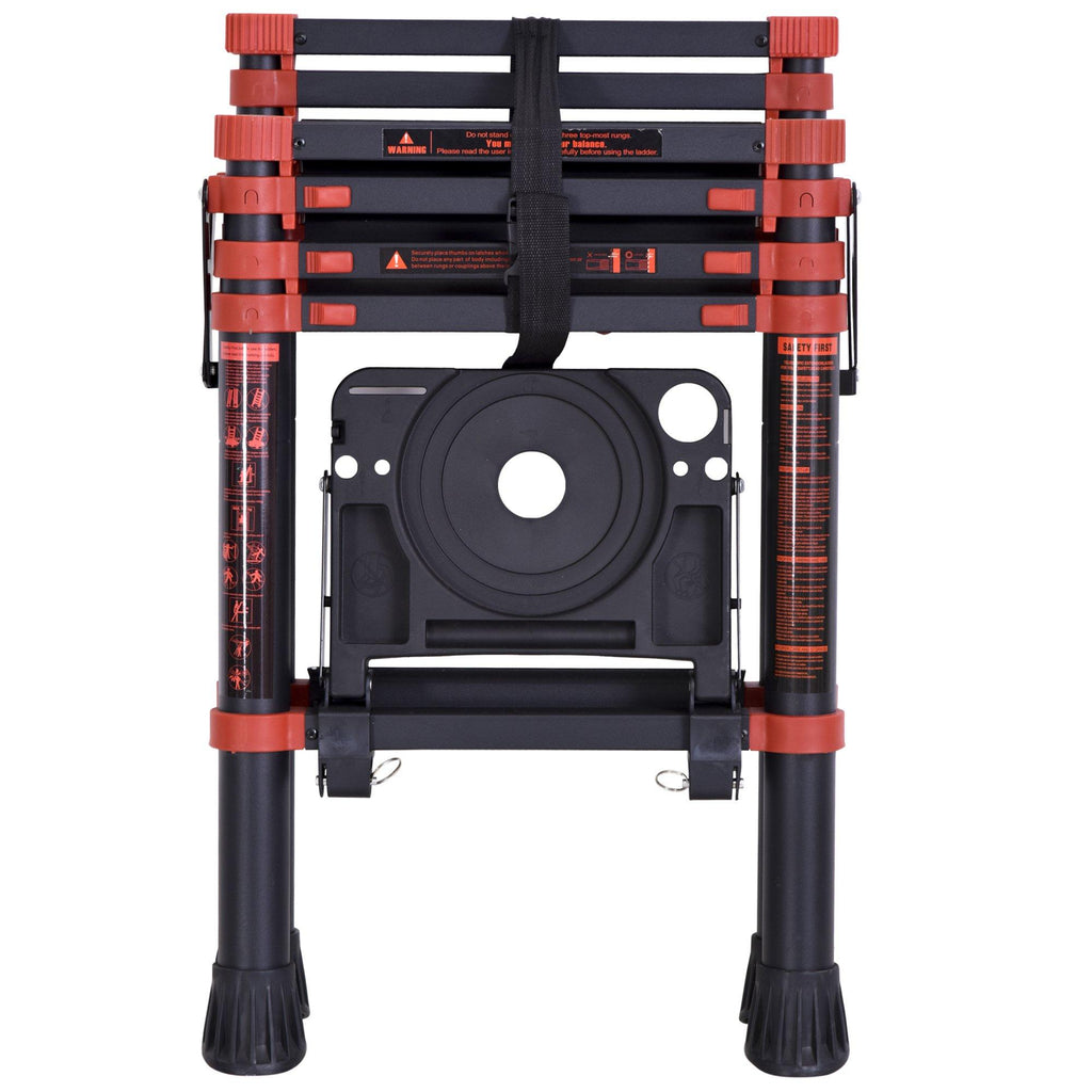 Échelle télescopique extensible 4+4 marches avec plateau porte-objets noir et rouge