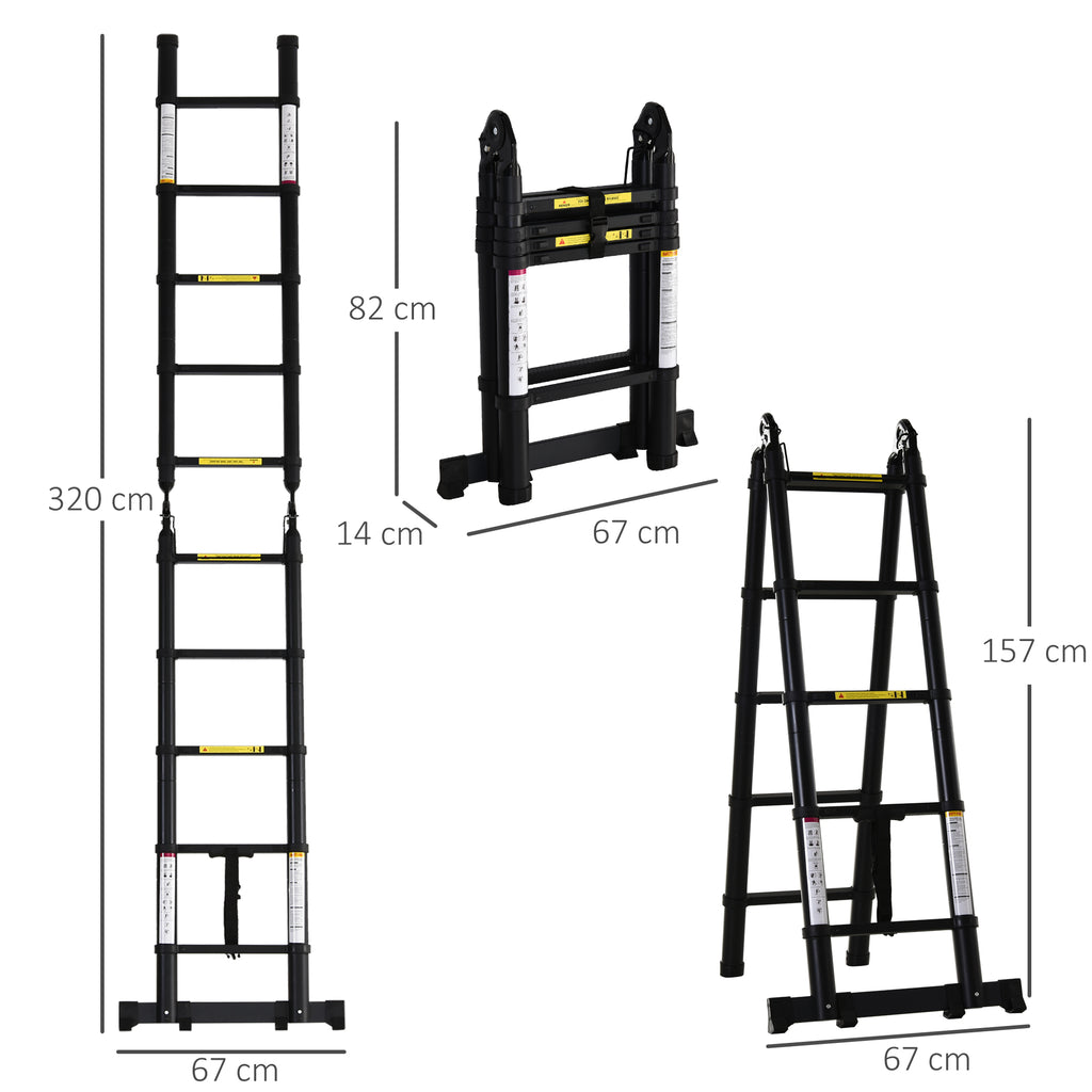 Scala Telescopica Pieghevole 10 Gradini 320x67x7 cm per Interni ed Esterni Nero