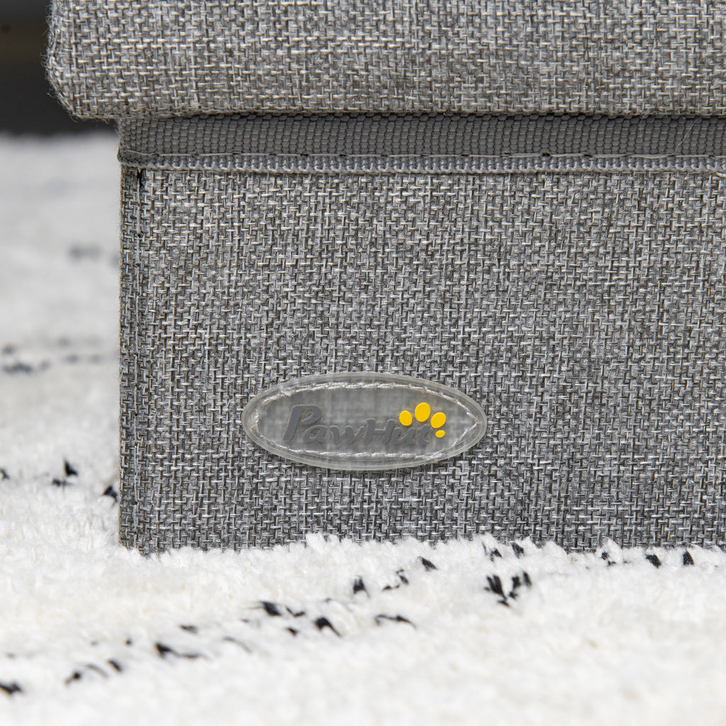 Scaletta per Cani 3 Gradini 63,5x42,5x40,5 cm in Tessuto Effetto Lino e MDF Grigio