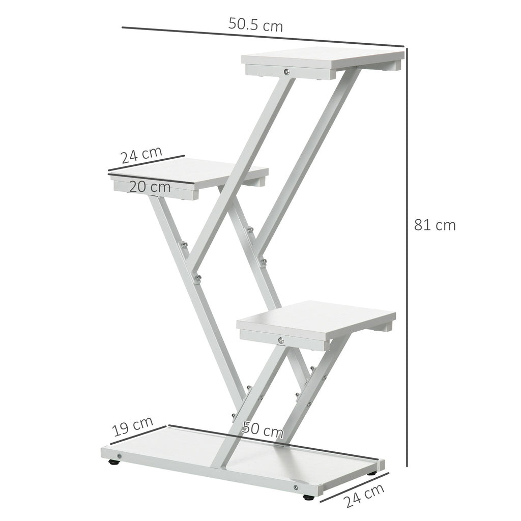 Porte-Pot Échelle sur 4 Niveaux pour Intérieur et Extérieur 50,5x24x81 cm en MDF et Acier Blanc