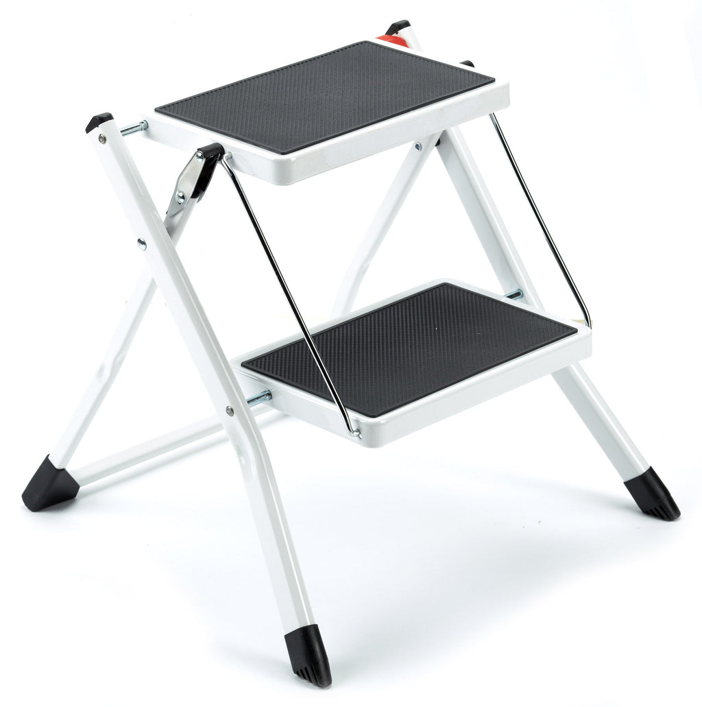 Tabouret Pliant Gain de Place Scaletto en Acier 2 Marches Fadi Blanc