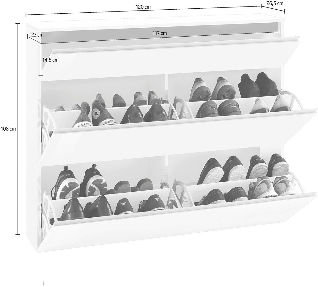 Scarpiera 2 Ante e 1 Antina a Ribalta 120x26,5x108 cm Magic Bianco Lucido