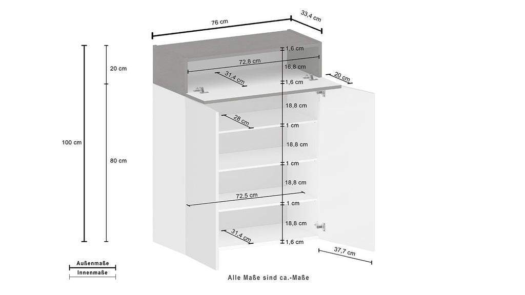 Scarpiera 2 Ante e 1 Ripiano a Ribalta 76x35x100 cm Savona 2A 1R Bianco Opaco/Grigio Ardesia