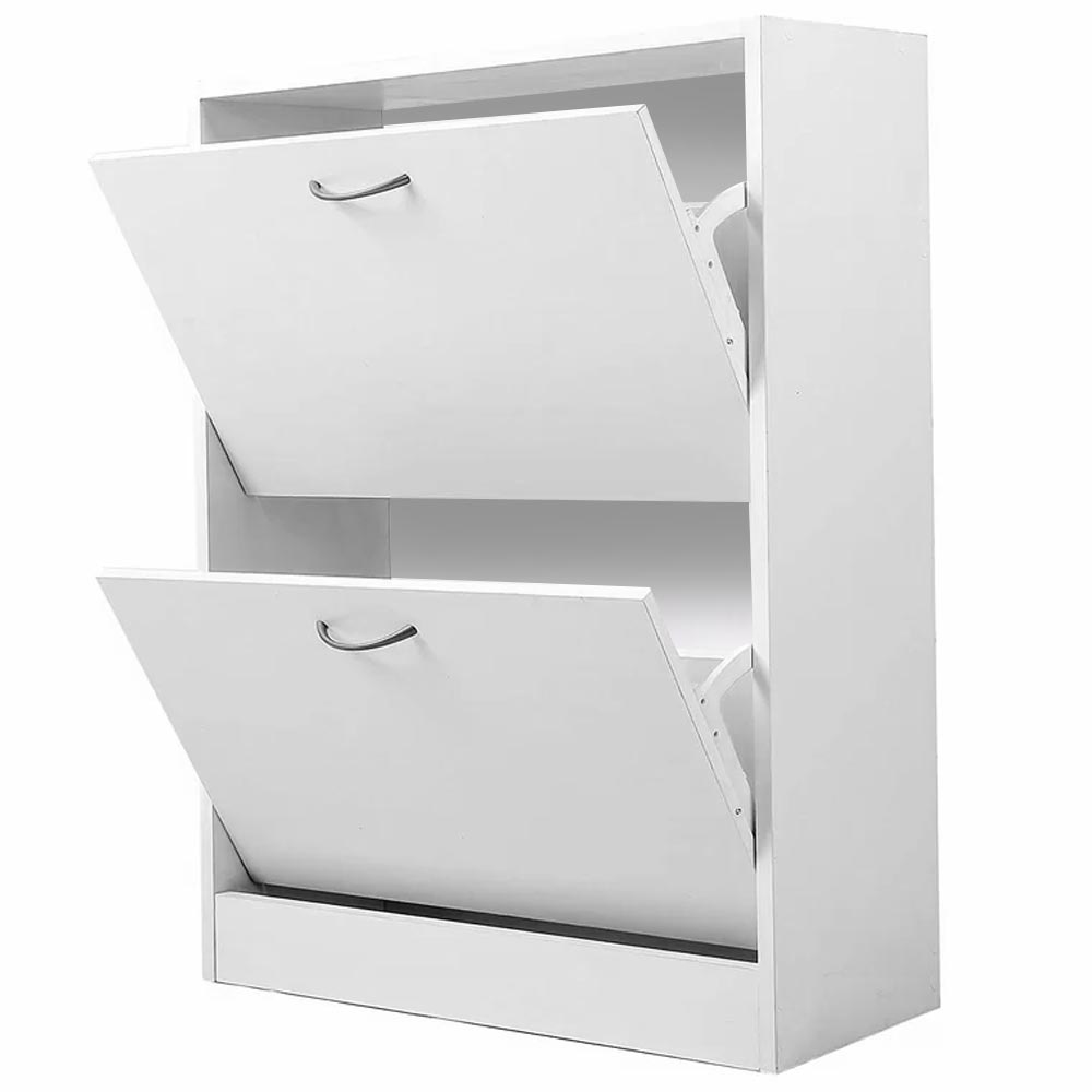 Scarpiera 2 Ante Ripiani Doppia Profondita in Melamina 60x24x83cm Colore Bianco