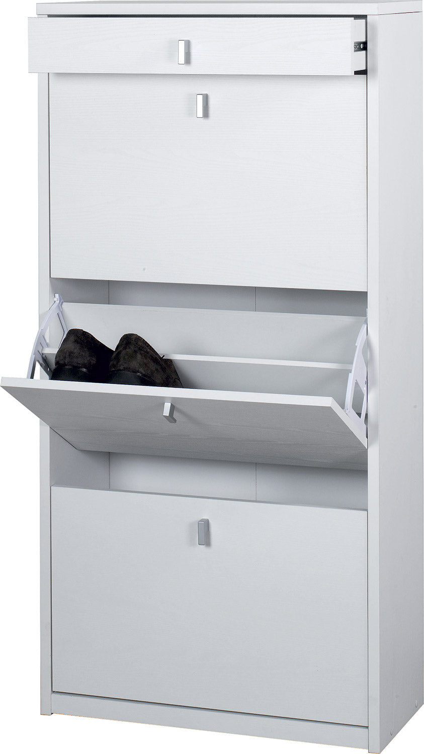Meuble à Chaussures 3 Portes 1 Tiroir 63x127x29 cm Blanc Flammé