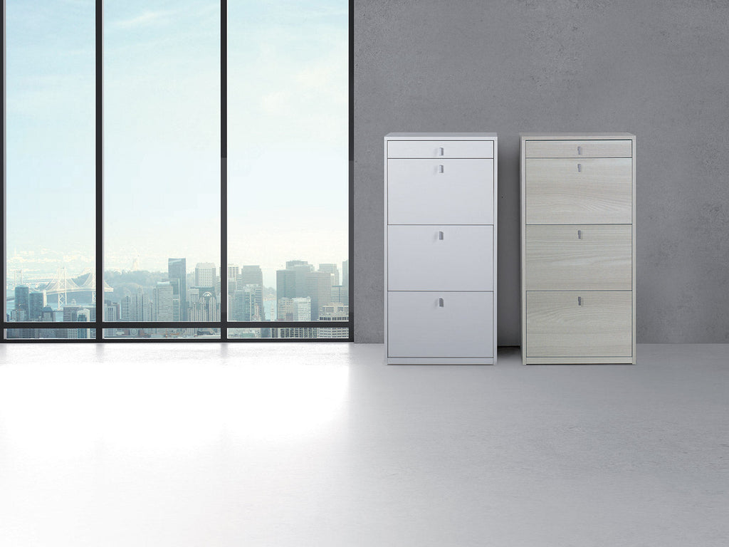 Meuble à Chaussures 3 Portes 1 Tiroir 63x127x29 cm Orme Clair