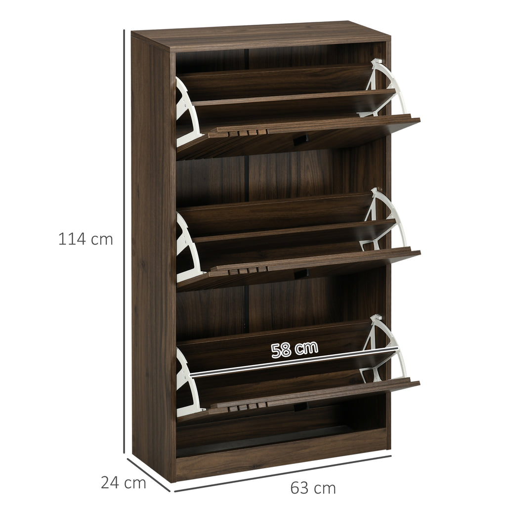 Scarpiera 3 Ante 18 Paia di Scarpe 63x24x114 cm in Truciolato Noce