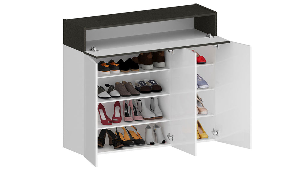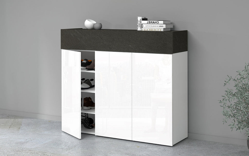 Scarpiera 3 Ante e 1 Ripiano a Ribalta 114x35x100 cm Savona 3A 1R Bianco Opaco/Grigio Ardesia