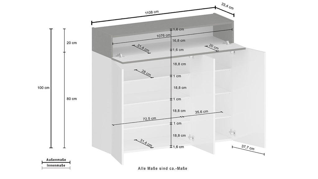La scarpiera SAVONA 3 ante battenti e 1 anta a ribalta si distingue per le sue misure compatte che permettono di posizionarla dove vogliamo senza rinunciare alla funzionalità per organizzare lo spazio e sistemare un buon numero di scarpe. Ciò che la rende unica, infatti, è la sua versatilità nell'essere posizionata non solo all'ingresso, ma anche nei corridoi e persino in soggiorno, donando un aspetto unico all'ambiente grazie al suo aspetto moderno e al design elegante. L'interno spazioso, dotato di 3 ripiani, può accogliere fino a 24 paia di scarpe, oltre ad altri accessori, i quali possono essere riposti nell'anta a ribalta che funge da comodo portaoggetti. Con le sue dimensioni di 114 x 35 x 100 cm e un peso di 48 kg, questa scarpiera, completamente Made in Italy e realizzata con materiali in legno riciclato, unisce un design moderno e originale a una spaziosità e capienza che soddisfano a pieno le esigenze di chi ha bisogno di riporre molte scarpe, o diversi oggetti che devono essere raggiunti con praticità. Semplice da montare, viene fornita in un intuitivo kit con chiare istruzioni di montaggio. La scarpiera SAVONA a 3 ante battenti e 1 anta ribalta rappresenta una soluzione spaziosa e versatile per l'organizzazione delle tue calzature. Caratterizzata da un design particolare ed originale, questa scarpiera combina lo stile e la qualità Made in Italy per offrirti un elemento dalla linea unica da poter mettere in qualsiasi spazio della casa. La sua struttura offre ampio spazio per riporre scarpe di qualsiasi tipo e misura, garantendo ordine e praticità. Disponibile in diverse combinazioni di colore, tra cui bianco lucido/bianco larice, bianco lucido/rovere e bianco lucido/report, questa scarpiera si adatta facilmente a vari stili d'arredamento e diverse esigenze. La finitura lucida conferisce un tocco di eleganza e modernità, mentre i materiali di alta qualità assicurano resistenza e durata nel tempo.