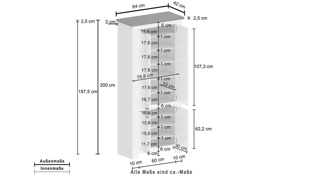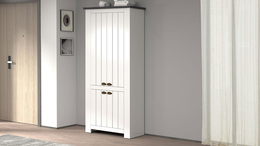 Scarpiera 4 Ante 84x42x200 cm Figo 4A Bianco Opaco/Report Grigio