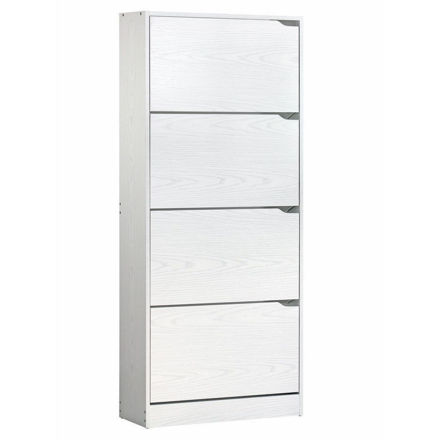 Scarpiera 4 Ante a Ribalta Doppio Ripiano 63x150x24 cm in legno rovere sbiancato
