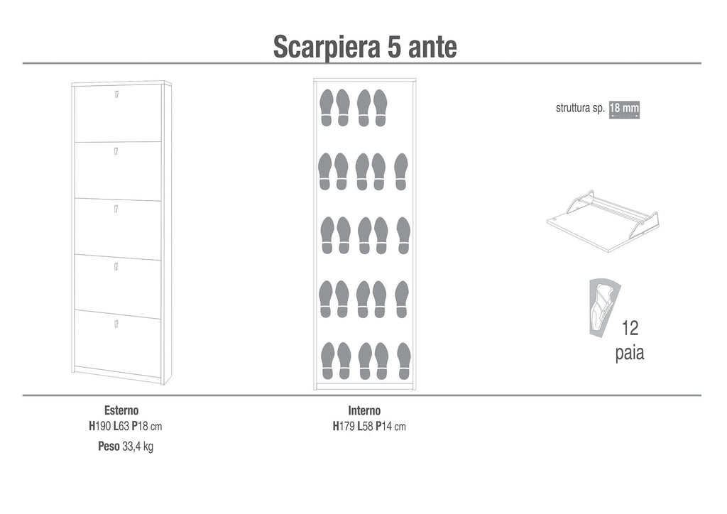Meuble à Chaussures 5 Portes 63x190x18 cm Orme Clair
