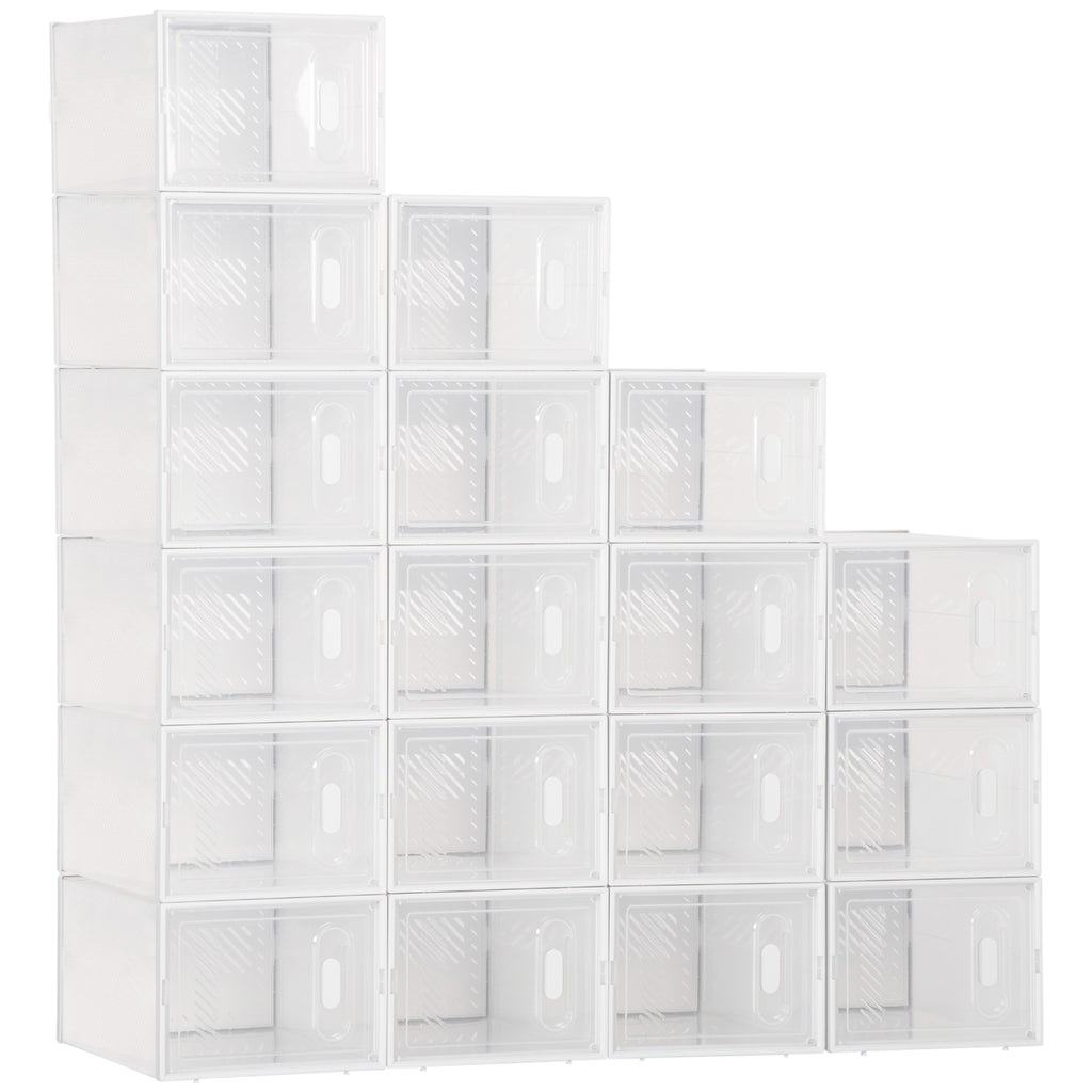 Scarpiera Modulare 18 Box 25x35x19 cm in Plastica PP Trasparente e Bianco