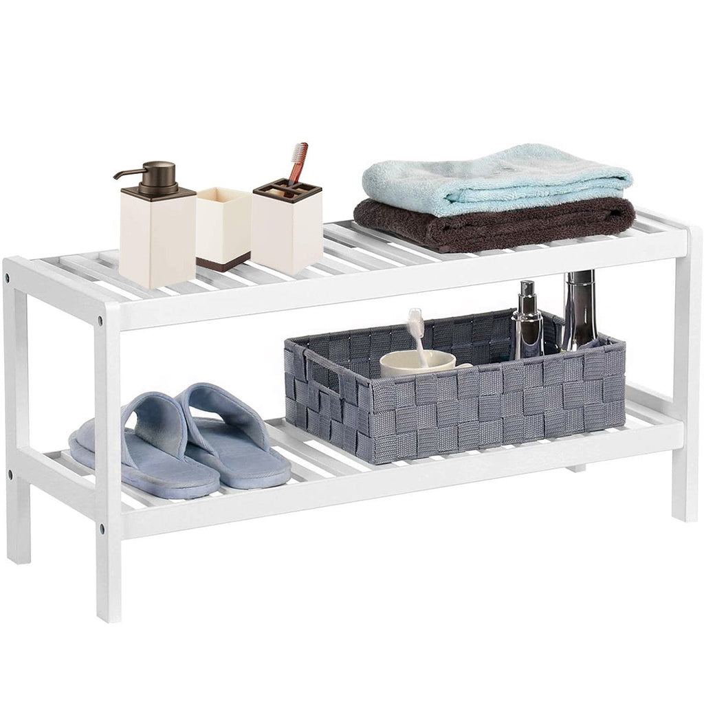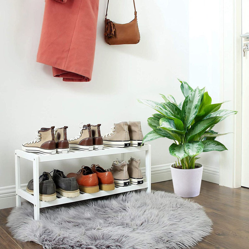 Étagère à chaussures polyvalente 33x70x26 cm 2 étagères en bambou blanc