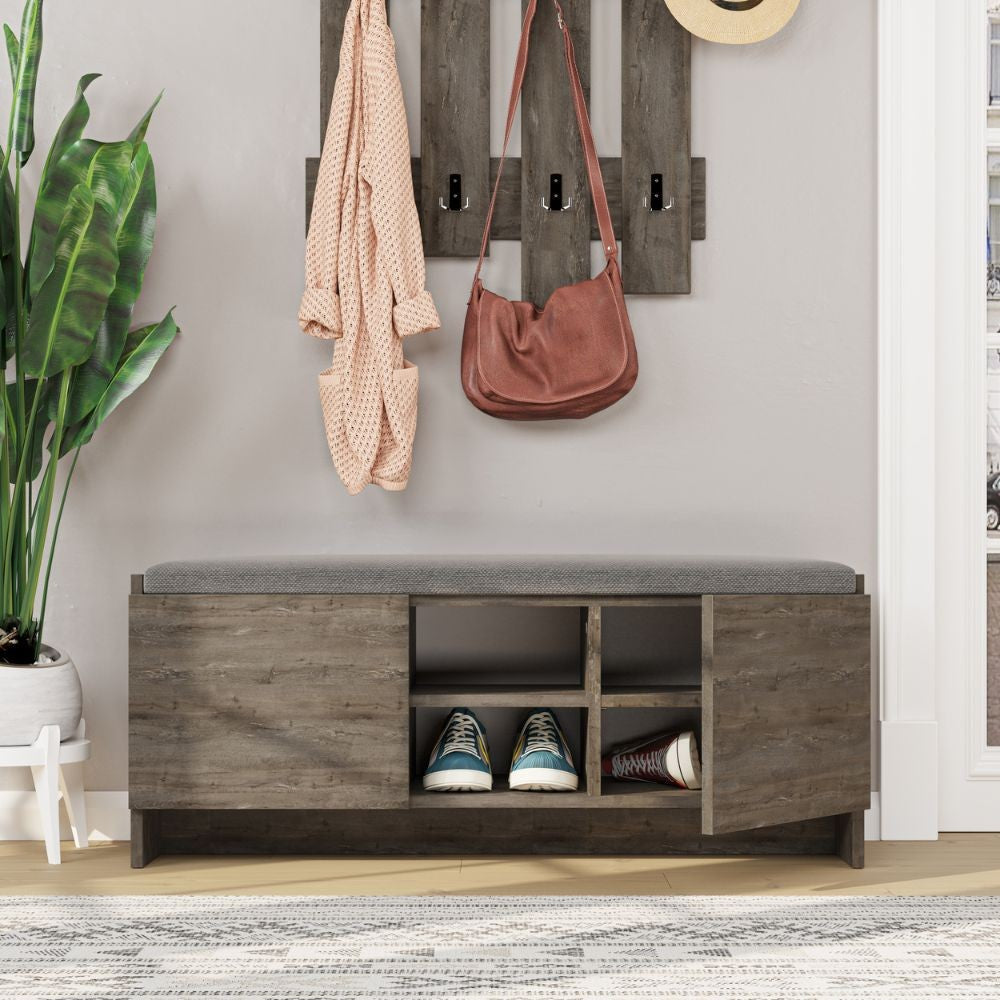 - Banc porte-chaussures avec portes, étagères et coussin rembourré