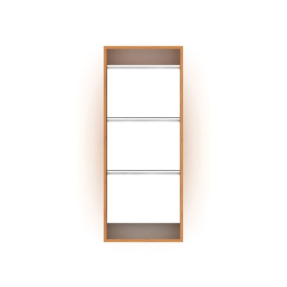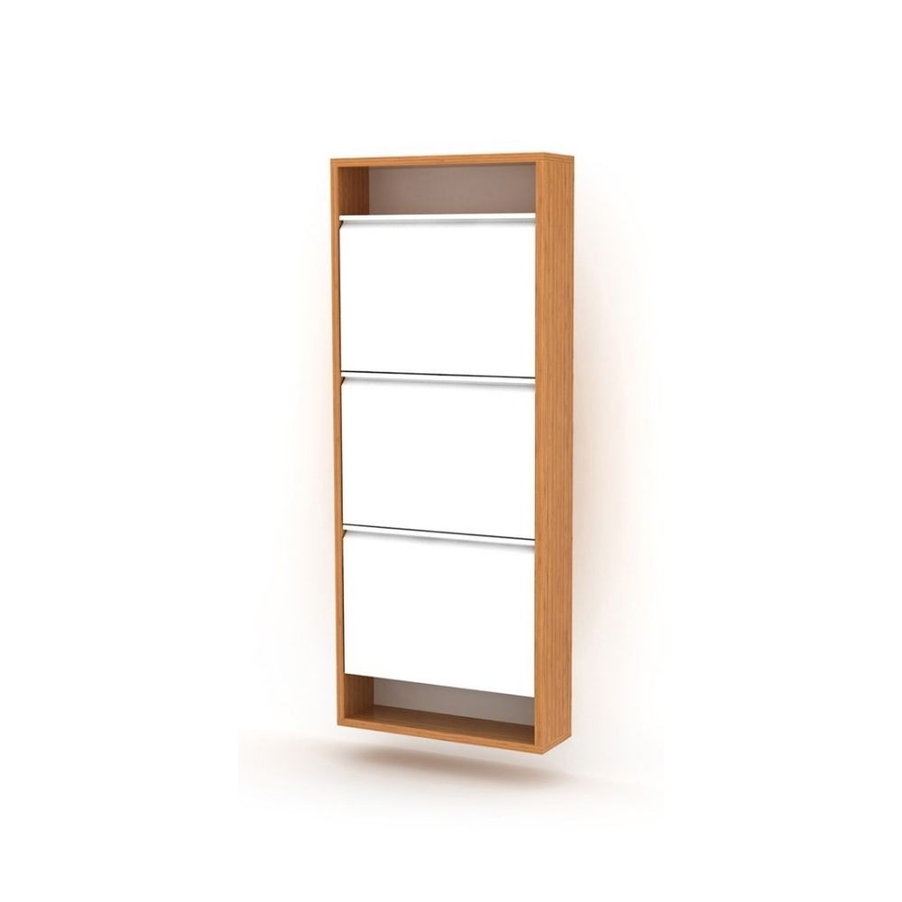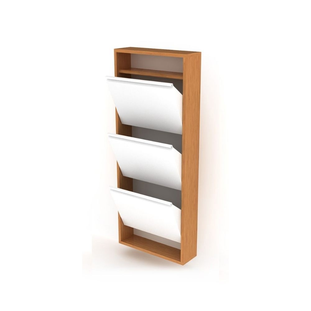 - Étagère à chaussures suspendue en bambou blanc avec 3 portes pliantes