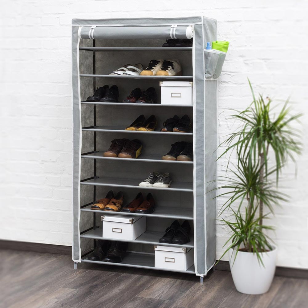 Scarpiera Salvaspazio 10 Ripiani 45 Paia Scaffale Acciaio e Tessuto TNT Grigio