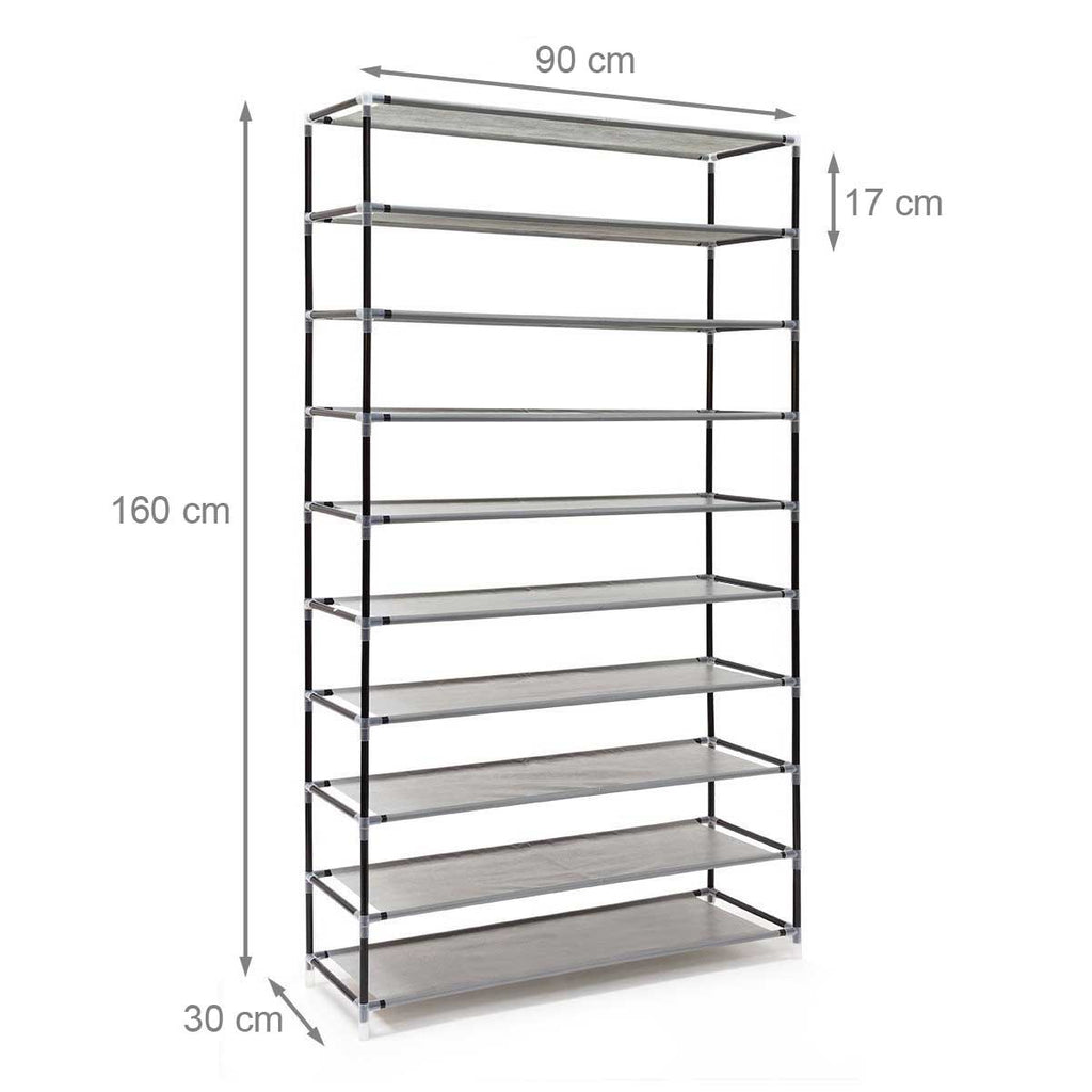 1 x Scarpiera 10 Ripiani 90x30x160H cm Grigio