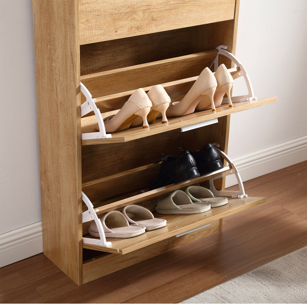 • Riordina i tuoi ambienti: scarpiera salvaspazio alta completa di 4 ante a ribalta, un'organizzazione efficace che consente di archiviare fino a un massimo di 24 paia di scarpe*, i divisori smontabili consentono un utilizzo più pratico in base alle proprie esigenze