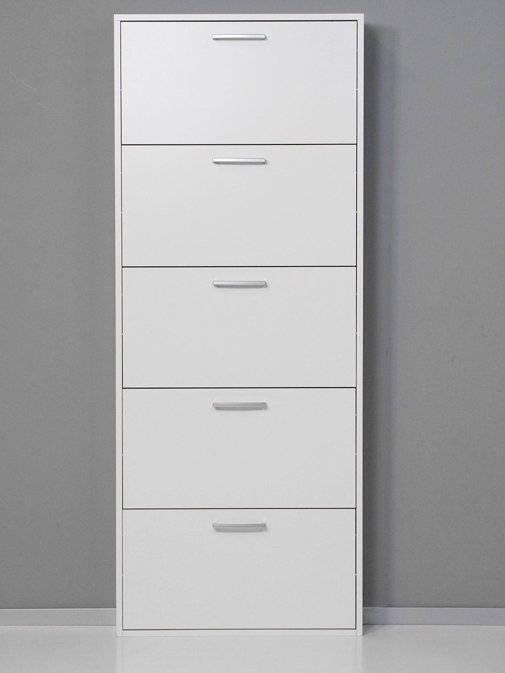 Meuble à chaussures peu encombrant 5 portes 15 paires 65x15x164 cm en aggloméré mélaminé blanc