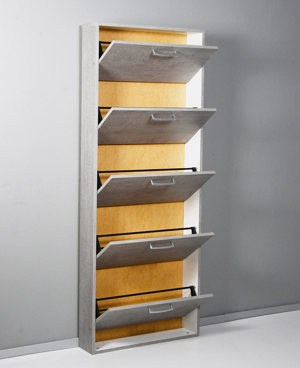 Meuble à chaussures peu encombrant 5 portes 15 paires 65x15x164 cm en aggloméré cimenté
