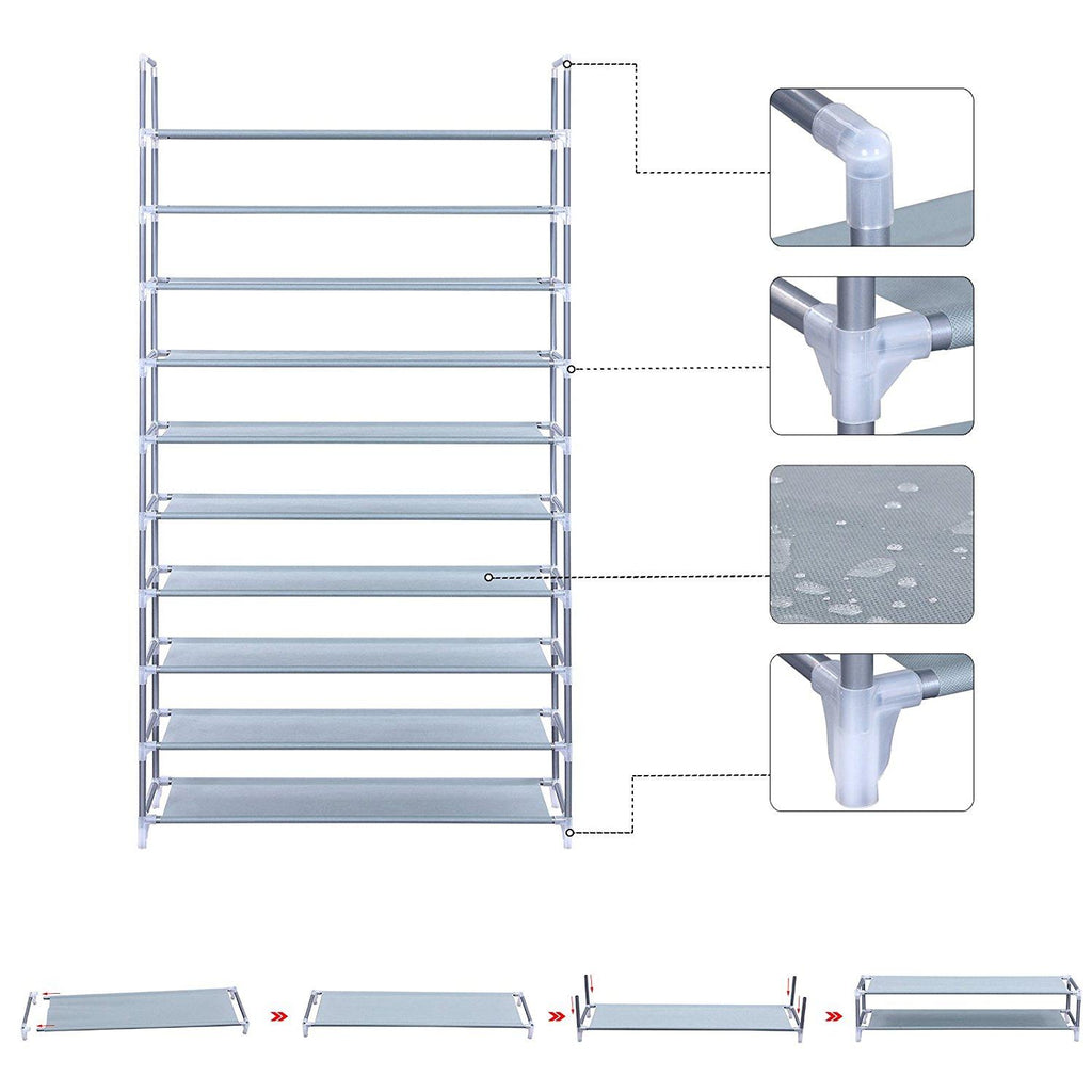 Le porte-chaussures léger mais stable s'intègre bien dans tous les environnements tels que le salon, l'entrée, le garage, la terrasse et dans tous les coins de la maison. Ses dix étagères peuvent accueillir jusqu'à un meuble à chaussures.
