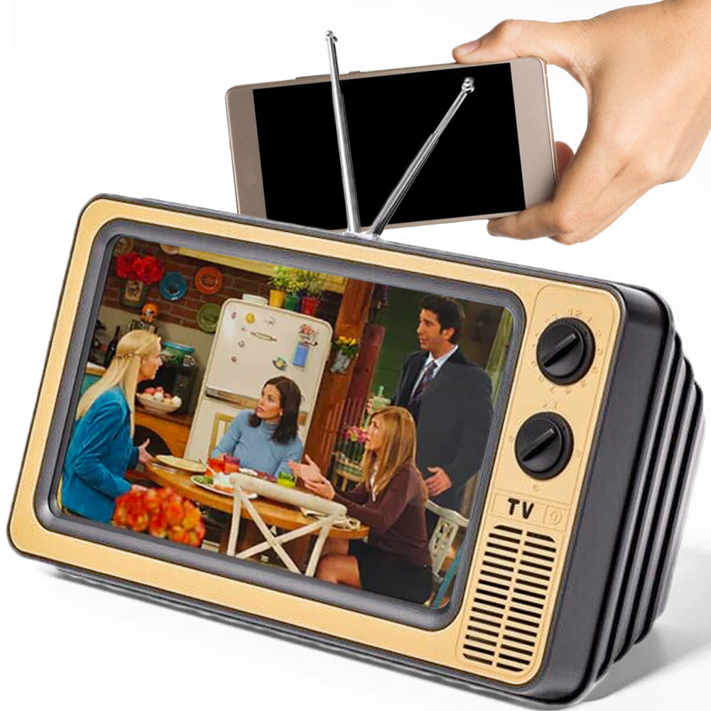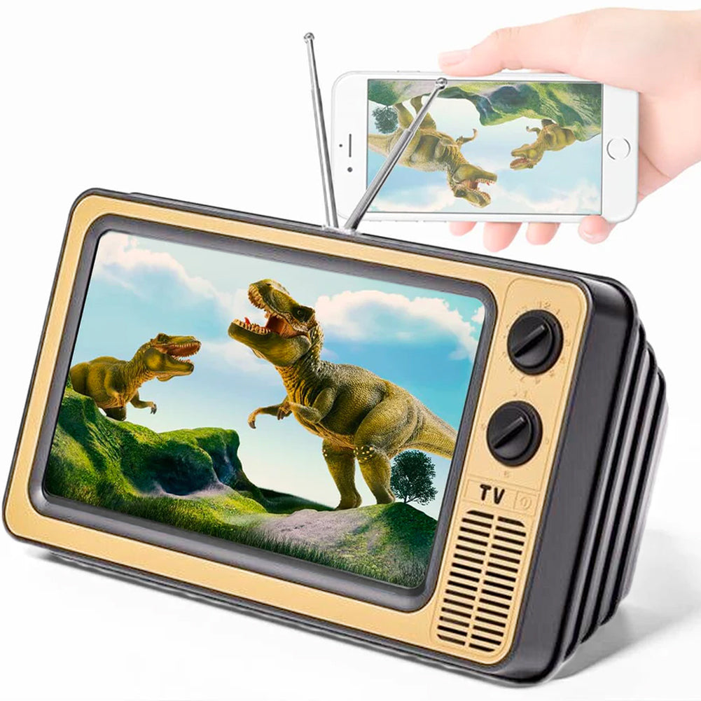 Questo elegantissimo amplificatore dal design vintage che richiama le tv a tubo catodico, è progettato per offrire un'esperienza di visione coinvolgente ed immersivi, rendendo i video del tuo smartphone più grandi, chiari e coinvolgenti.