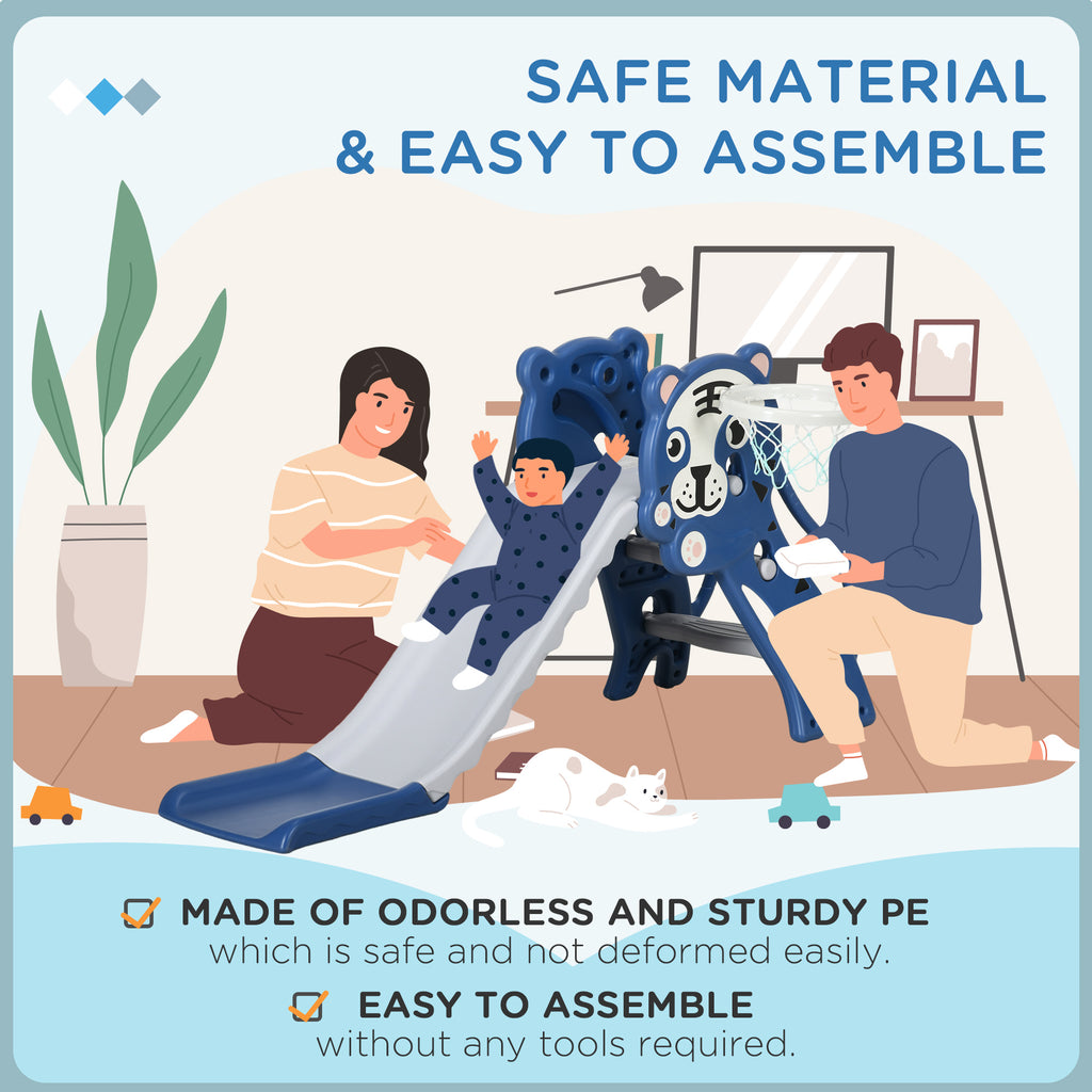 Scivolo per Bambini 133x60x70 cm con Canestro Laterale in PE Blu e Grigio