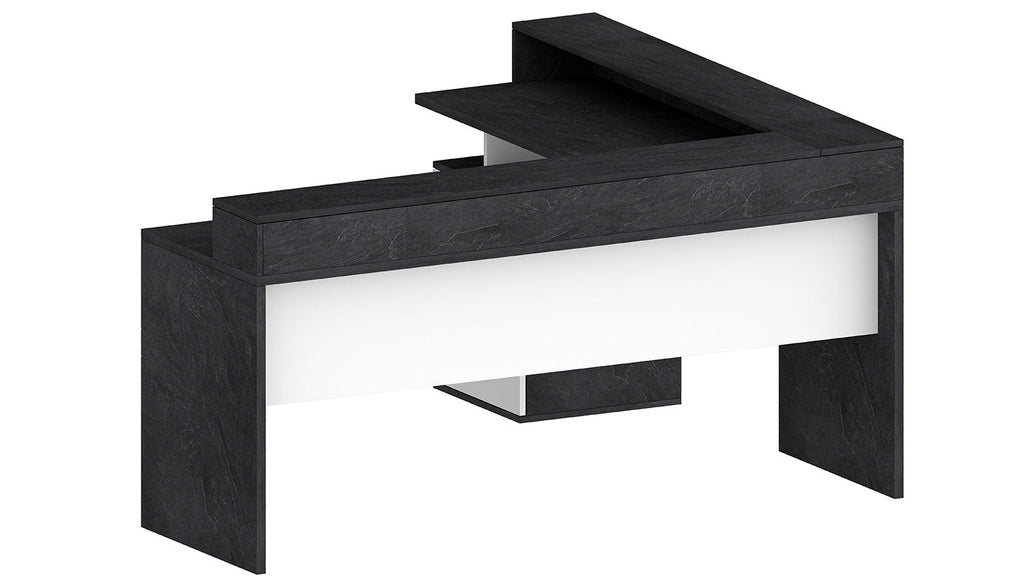 La scrivania angolare con sopralzo NEW SELINA, unisce design e funzionalità, offrendo uno spazio ideale per lavorare, studiare o dedicarsi ai propri hobby con comfort e stile. Sul suo ampio piano d'appoggio, dotato di sopralzo, possono starci diversi accessori da ufficio, tra cui il PC, portapenne e lampade da tavolo, rendendo così lo spazio efficiente e piacevole. I 3 cassetti, dotati di guide in metallo, permettono di archiviare documenti, libri e fascicoli in modo ordinato e accessibile. Il sopralzo, inoltre, può ospitare anche una luce LED, trasformando così la scrivania in una postazione da gaming. Facile da montare grazie a istruzioni di montaggio incluse molto intuitive, questa scrivania vanta dimensioni generose di 180/160 x 60 x 90 cm e una struttura robusta con frontali spessi 25/16 mm, garantendole così solidità e durabilità nel tempo. Realizzata al 100% in Italia con materiali in legno riciclato, la scrivania angolare con sopralzo NEW SELINA, presenta un design moderno e originale. Con un peso di 83 kg, è un mobile stabile e affidabile, che offre ampio spazio e capacità di archiviazione per massimizzare la tua produttività. La scrivania angolare con sopralzo NEW SELINA è la scelta ideale per chiunque abbia bisogno di uno spazio di lavoro versatile e di alta qualità, sia per lo studio di casa che per l'ufficio. Questo complemento d'arredo riesce a coniugare un design elegante, completamente Made in Italy, con un'efficienza perfetta. L'abbinamento di colore bianco laccato lucido e report grigio della scrivania, dona inoltre, un tocco di luminosità e modernità all'ambiente lavorativo. Dotato di un sopralzo e tre spaziosi cassetti, il mobile è un'ottima soluzione per organizzare documenti e materiali di lavoro. La sua struttura angolare, inoltre, massimizza l'utilizzo dello spazio disponibile, consentendo così una disposizione flessibile e ergonomica. Realizzata con materiali di alta qualità, la scrivania angolare con sopralzo NEW SELINA garantisce durabilità e resistenza nel tempo ed è la soluzione ideale per creare un ambiente di lavoro funzionale e accogliente.