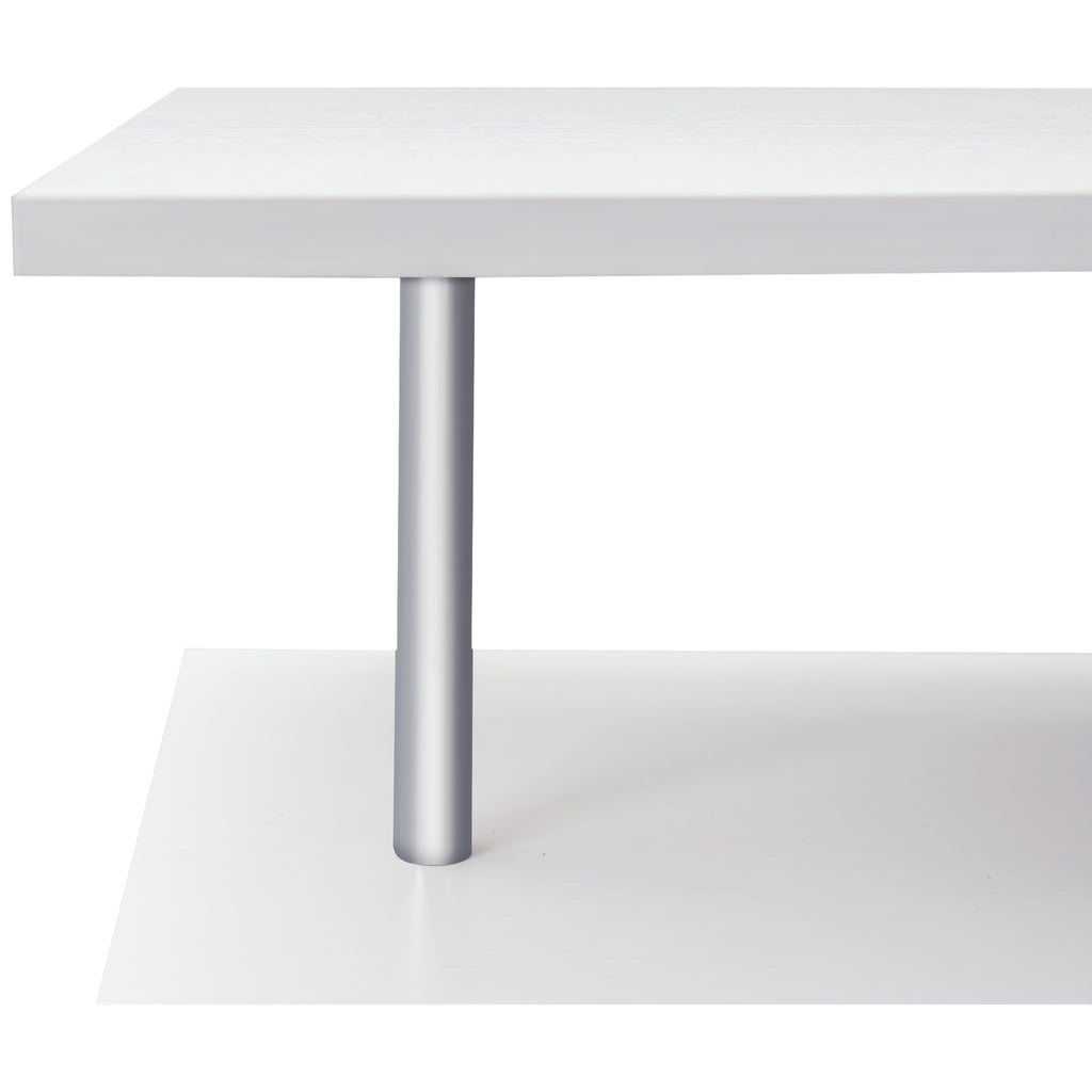 Rotatif à 360°, le grand plan de travail est idéal pour les ordinateurs, l'étagère en forme de S offre un espace supplémentaire.