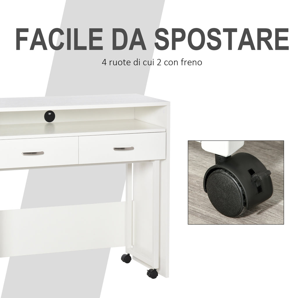 Bureau avec Tiroirs et Roulettes 100x36x88 cm en Métal et MDF Blanc