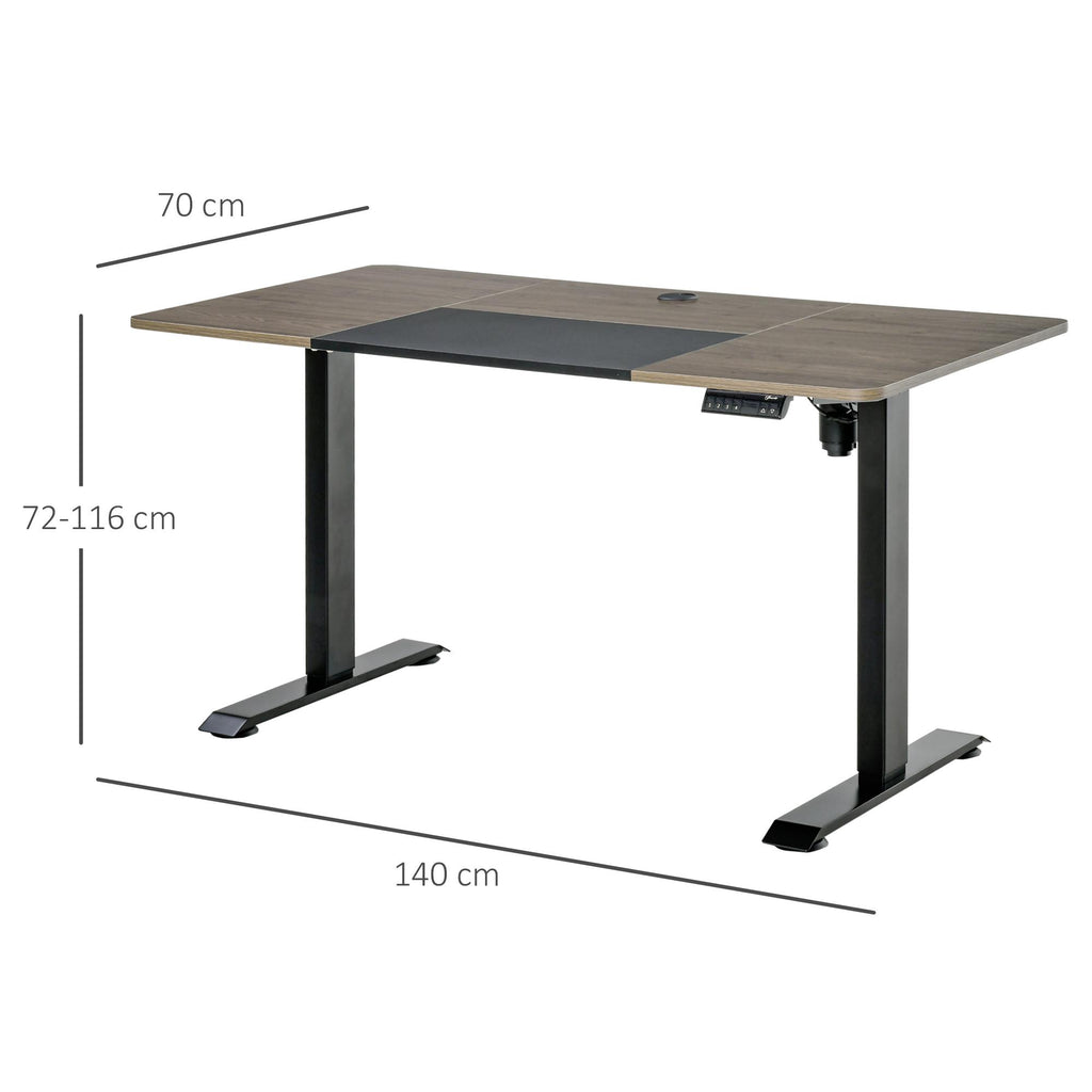 Bureau avec Réglage en Hauteur Electrique 140x70x72-116 cm en Métal et Teck et Aggloméré Noir