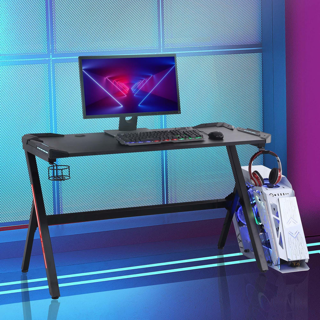 - LUMIÈRES LED : Ce bureau de jeu est doté de bandes lumineuses LED colorées sur le plateau et les pieds. Créez la bonne ambiance pour étudier, travailler ou jouer à des jeux vidéo !
