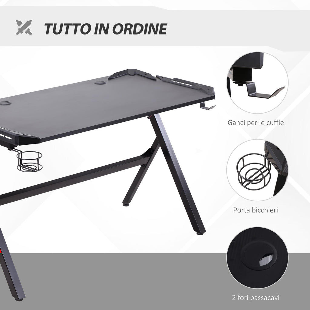 Bureau de jeu avec lumières LED 120x60x73 cm en MDF noir