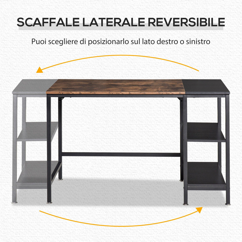 Bureau 120x60x76 cm 2 étagères en métal et aggloméré marron et noir