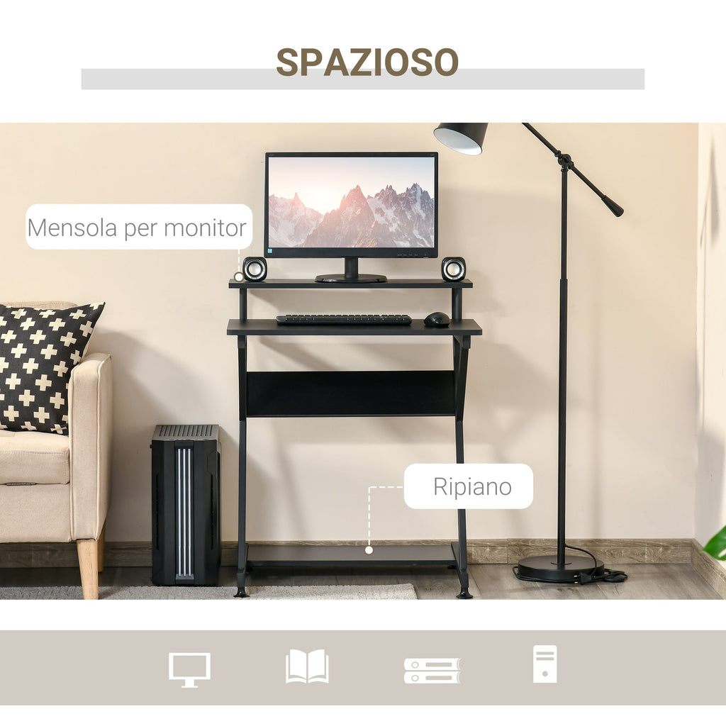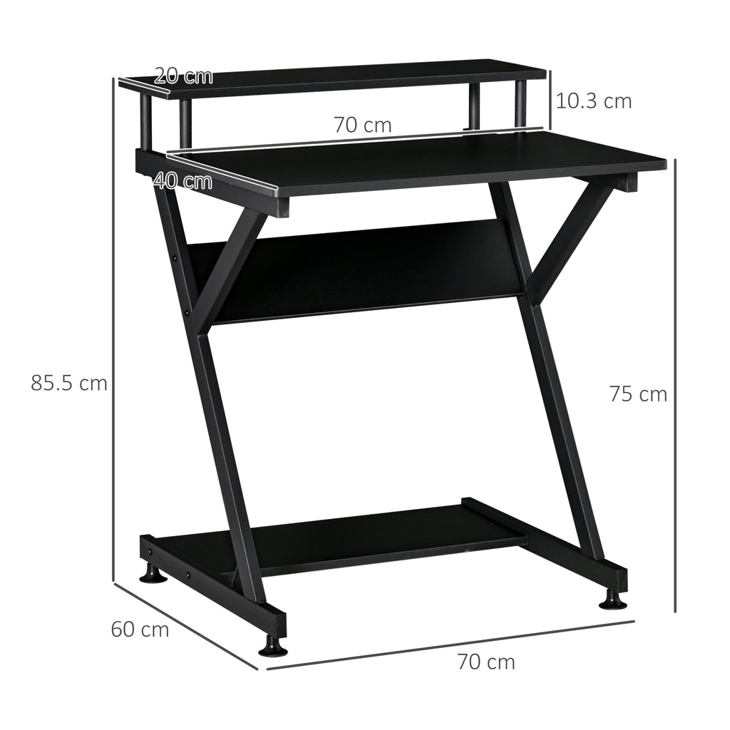 Bureau 70x60x85,5 cm Étagère Moniteur Surélevée en Bois Noir