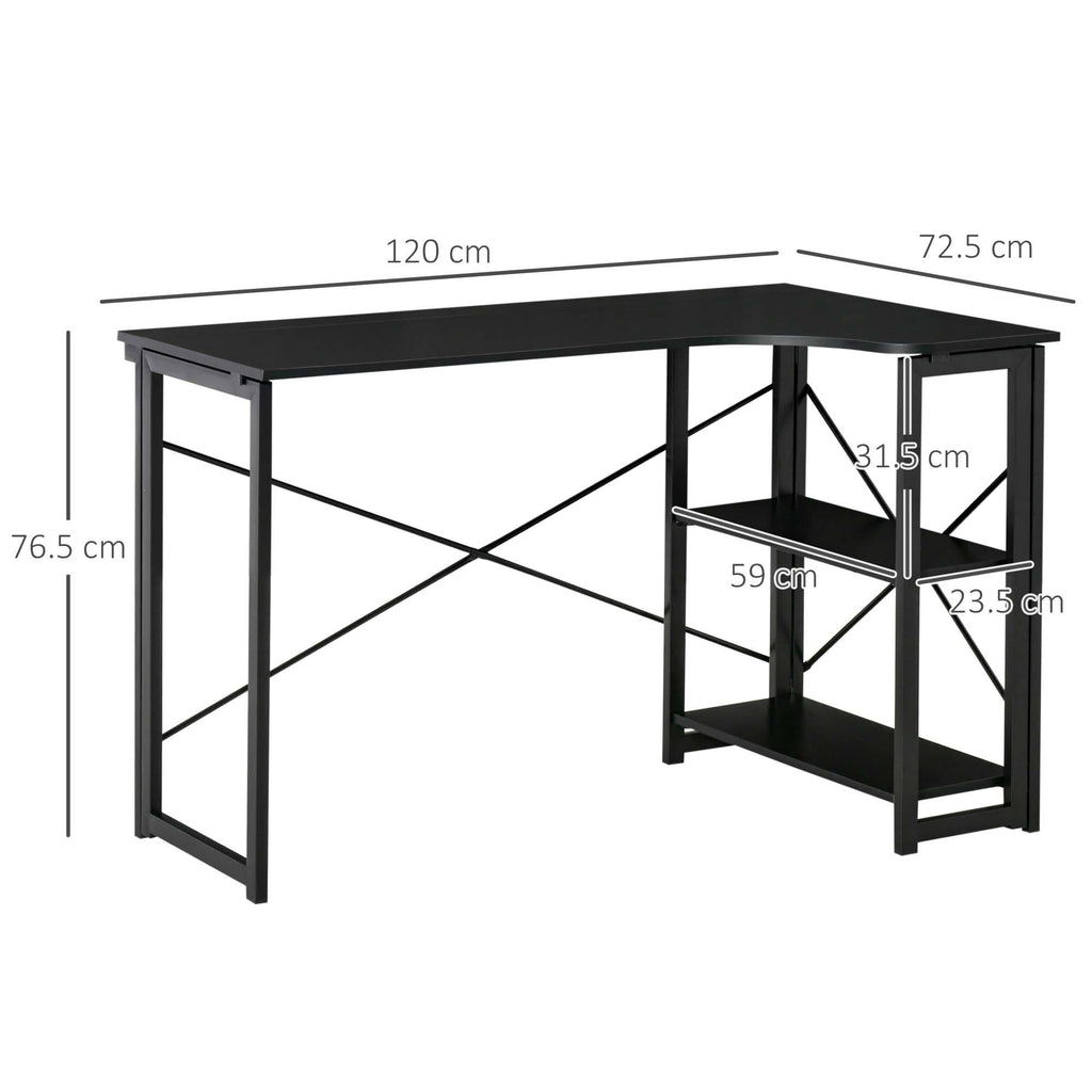 Bureau d'Angle 120x72,5x76,5 cm en MDF et Métal Noir