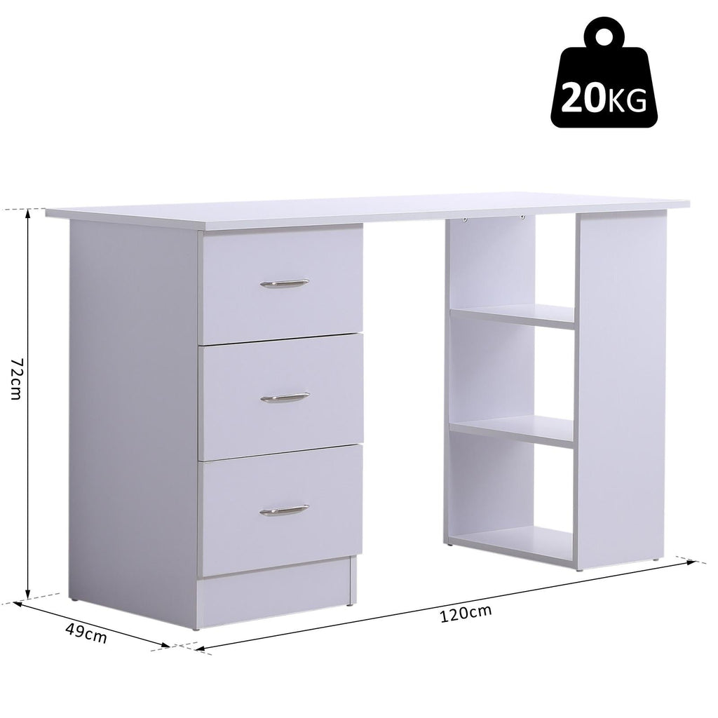 Bureau avec 3 tiroirs et étagères en bois blanc 120x49x72 cm