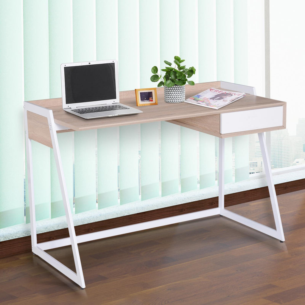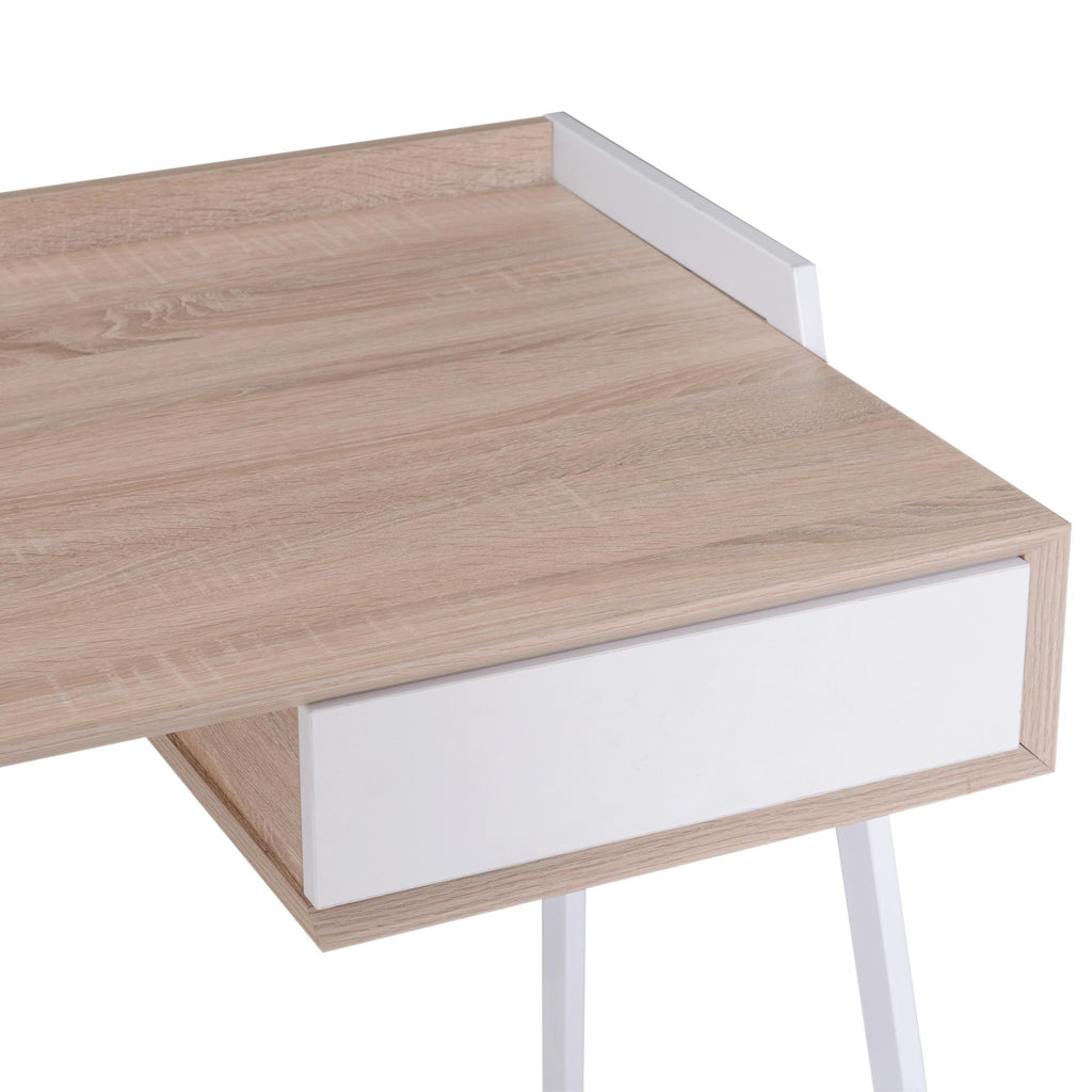 Bureau avec tiroir en bois et acier, blanc et chêne 120x60x80 cm