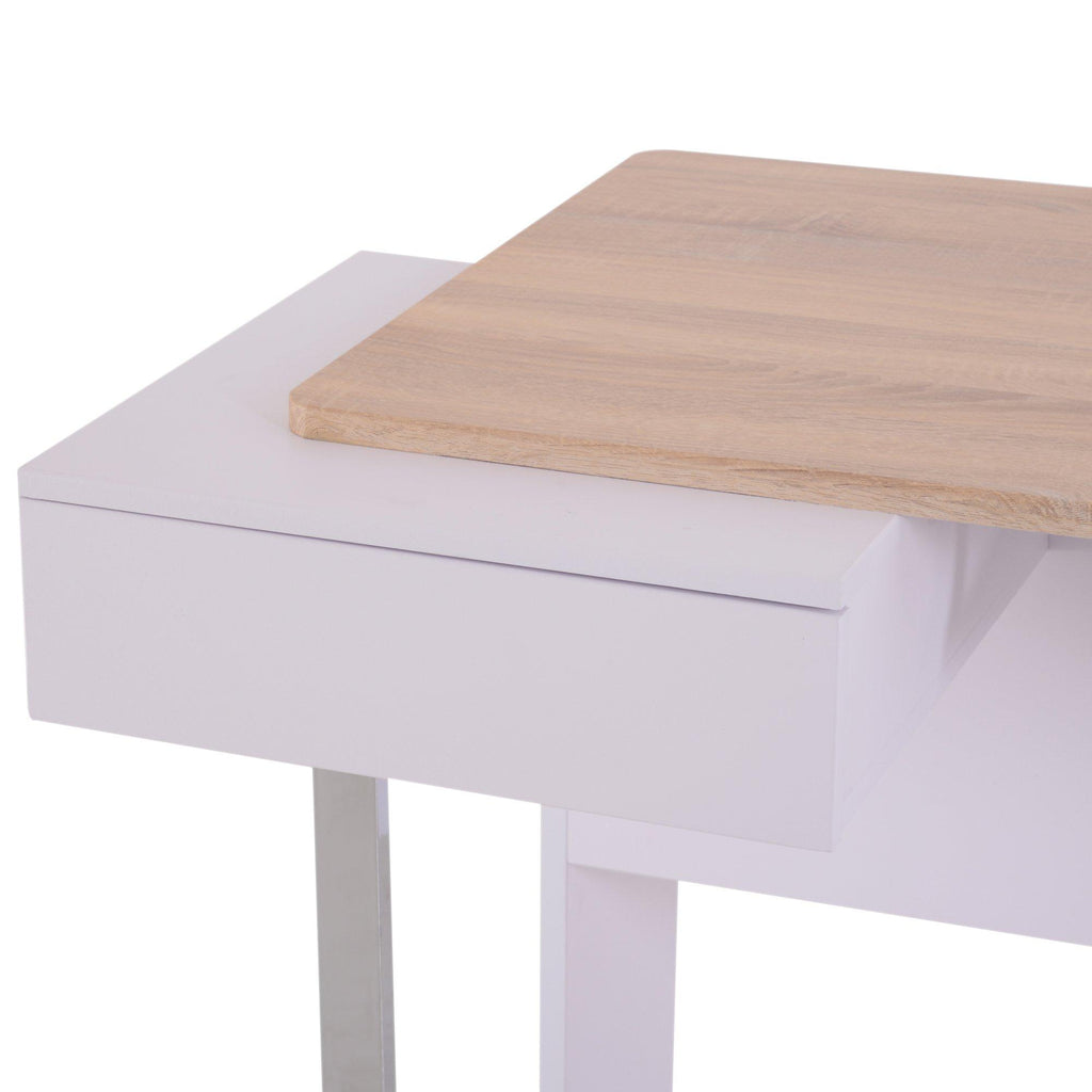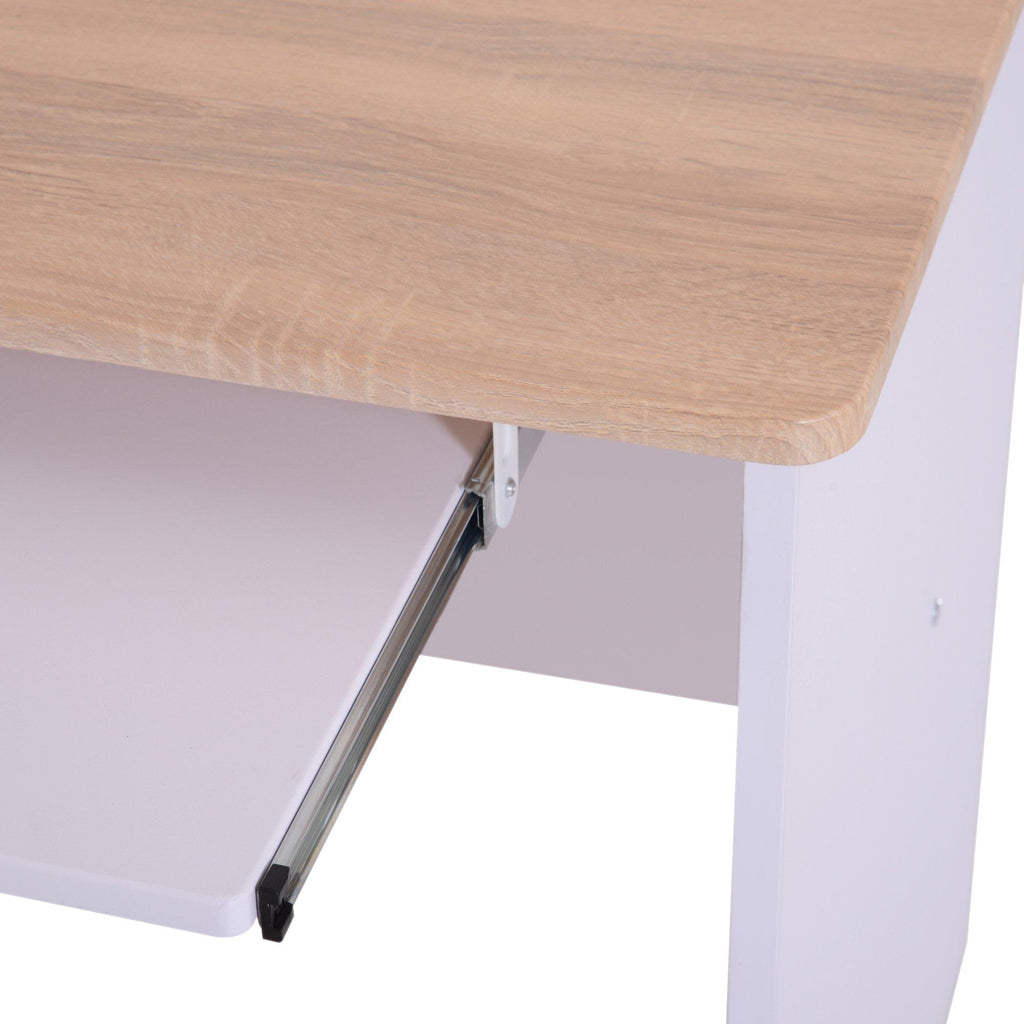 Bureau avec étagère pour clavier en bois blanc et chêne 130x70x75,5 cm