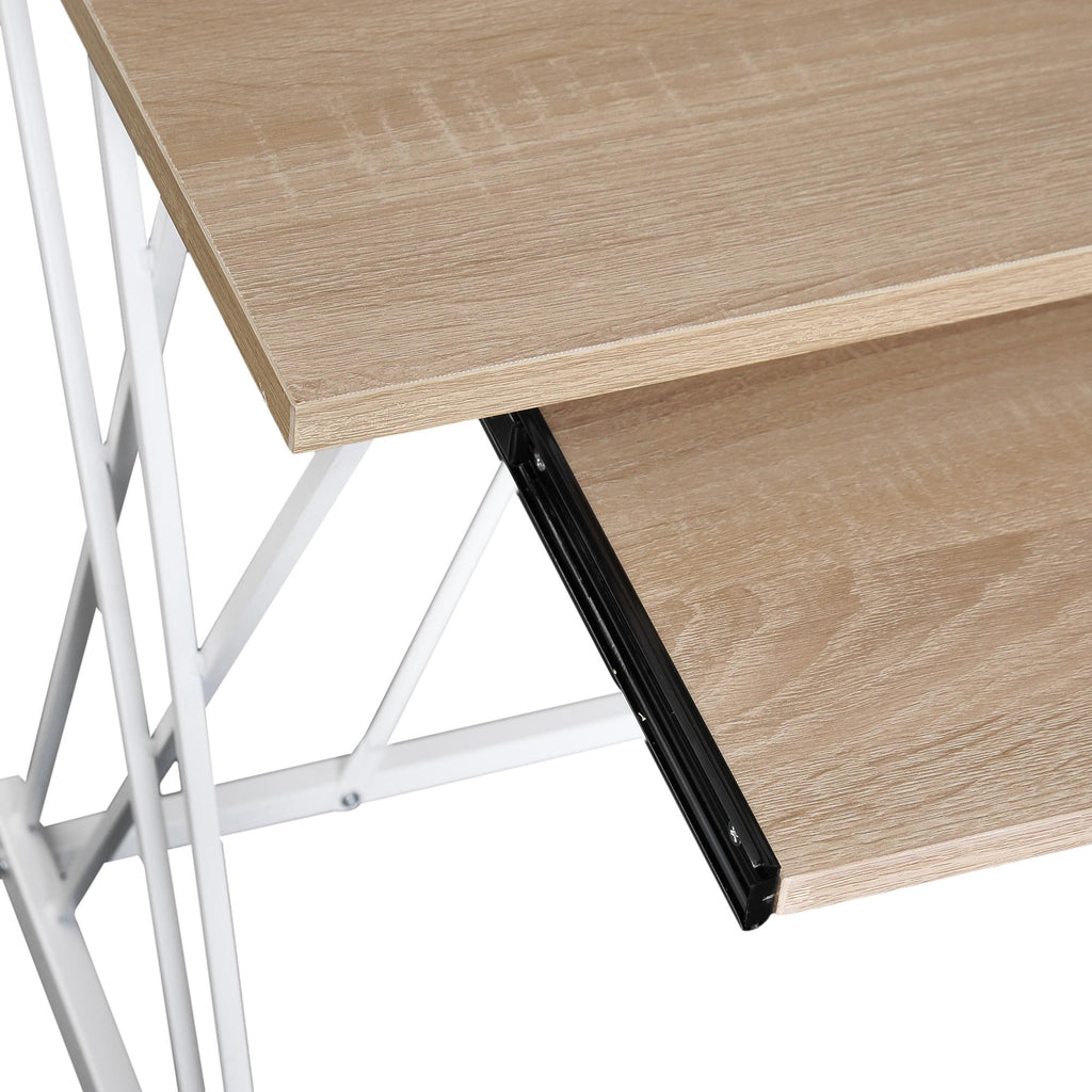 Bureau en acier blanc et bois de chêne avec tiroirs 110x55x76 cm