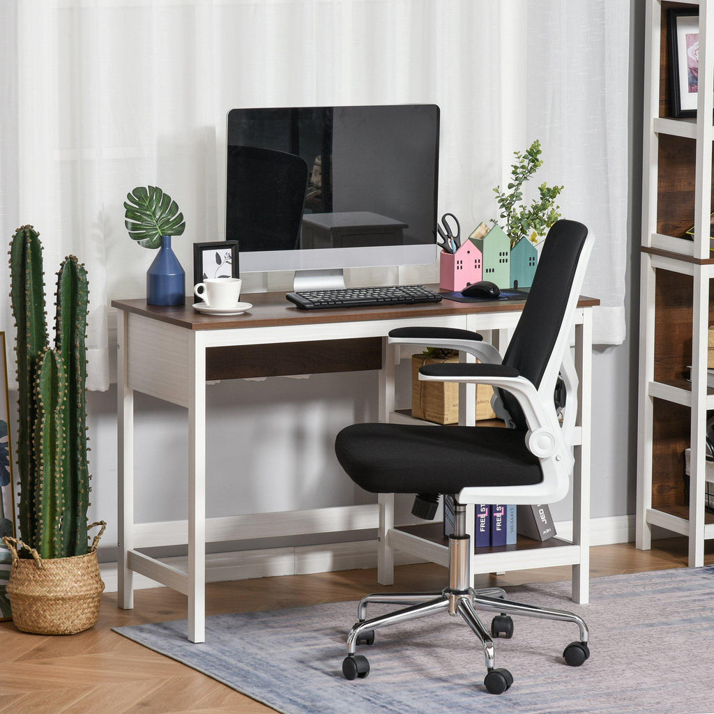 Bureau PC Stand 110x48x76,2 cm en noyer foncé et MDF blanc